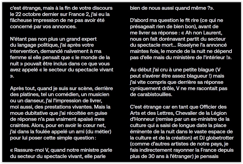 • Laurent Garnier est le “parrain” du projet: il signe la préface et relayera le projet sur ses réseaux.