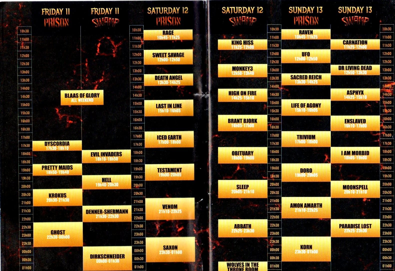 La Swamp se vide d’ailleurs peu à peu dès la reprise des compositions du quintet, préférant aller se préparer pour la messe noire tant attendue de ce vendredi soir sur la Prison stage. Une prestation en demi-teinte qui aurait pu contenter les fans de Mercyful Fate, à condition d’avoir de meilleures conditions sonores.