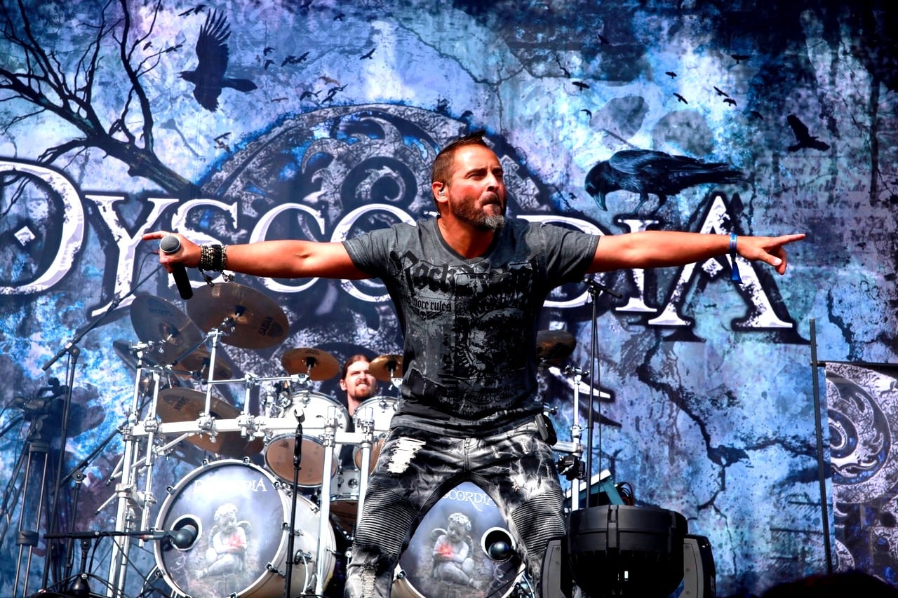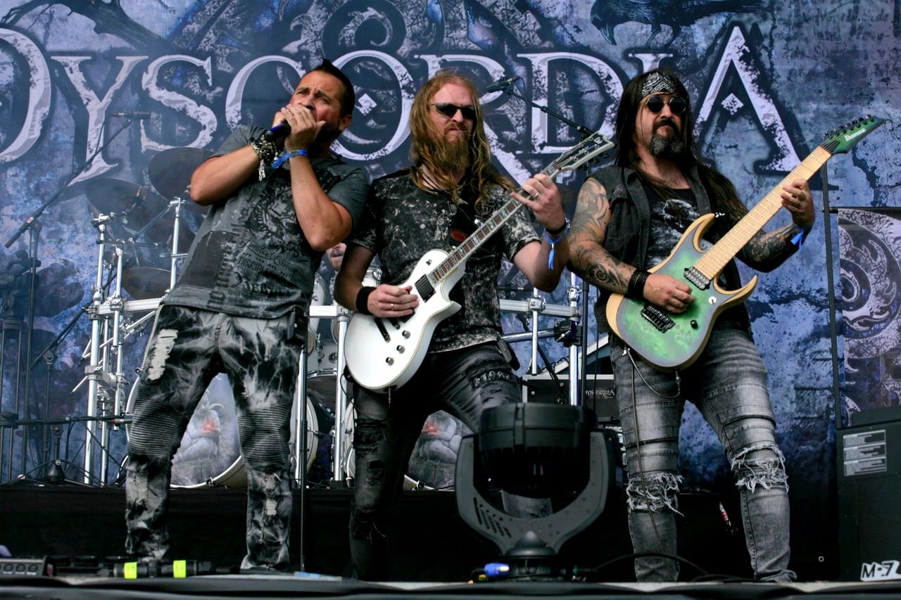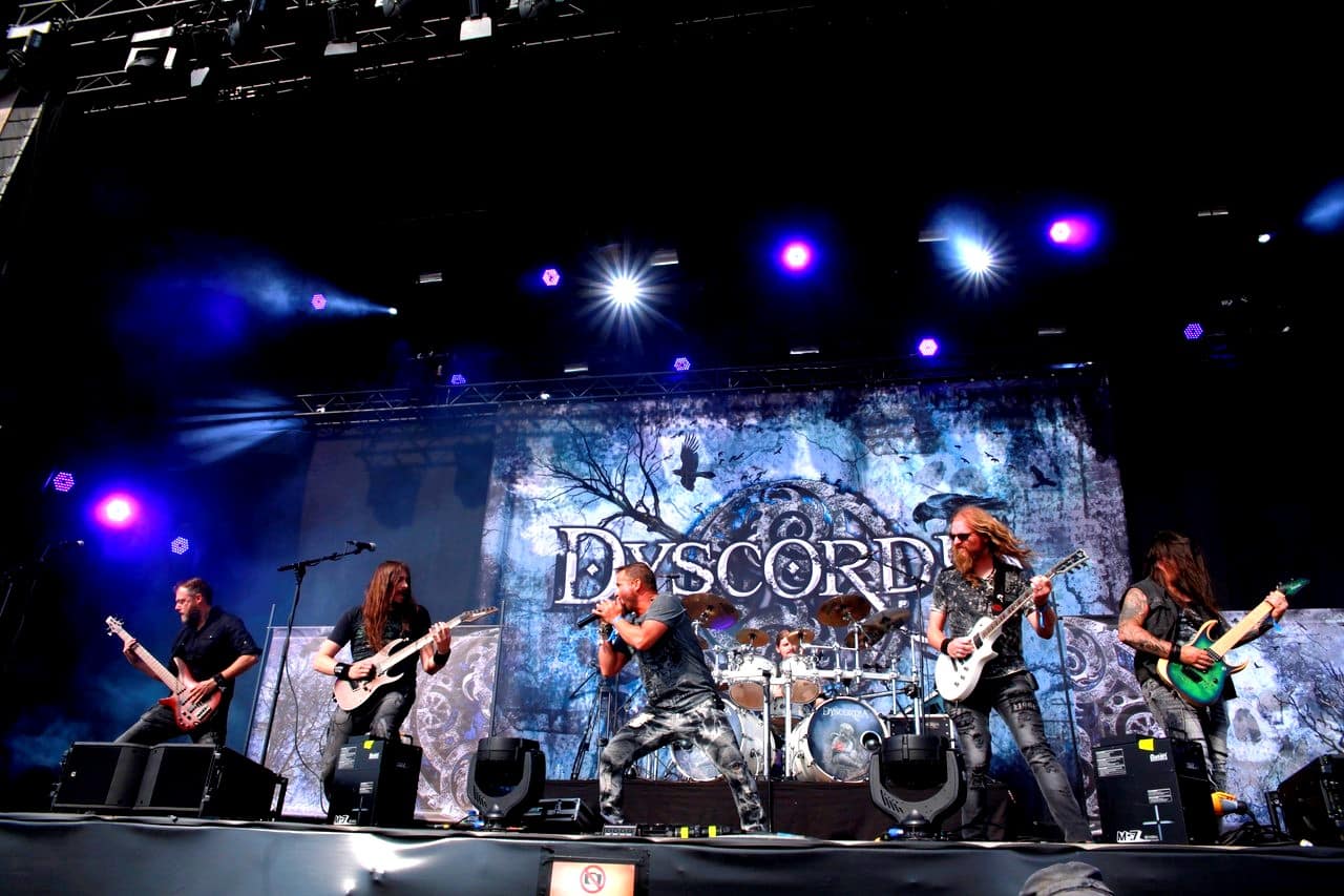 C’est donc Dyscordia qui a la lourde tâche d’ouvrir ce festival sur la scène Prison. Et ça démarre bien, avec un très bon son, un style plutôt métal progressif et pas mal d’énergie sur scène. C’est bien joué et le groupe belge parait à l’aise avec les premiers (déjà nombreux!) festivaliers qui viennent juste d’arriver.