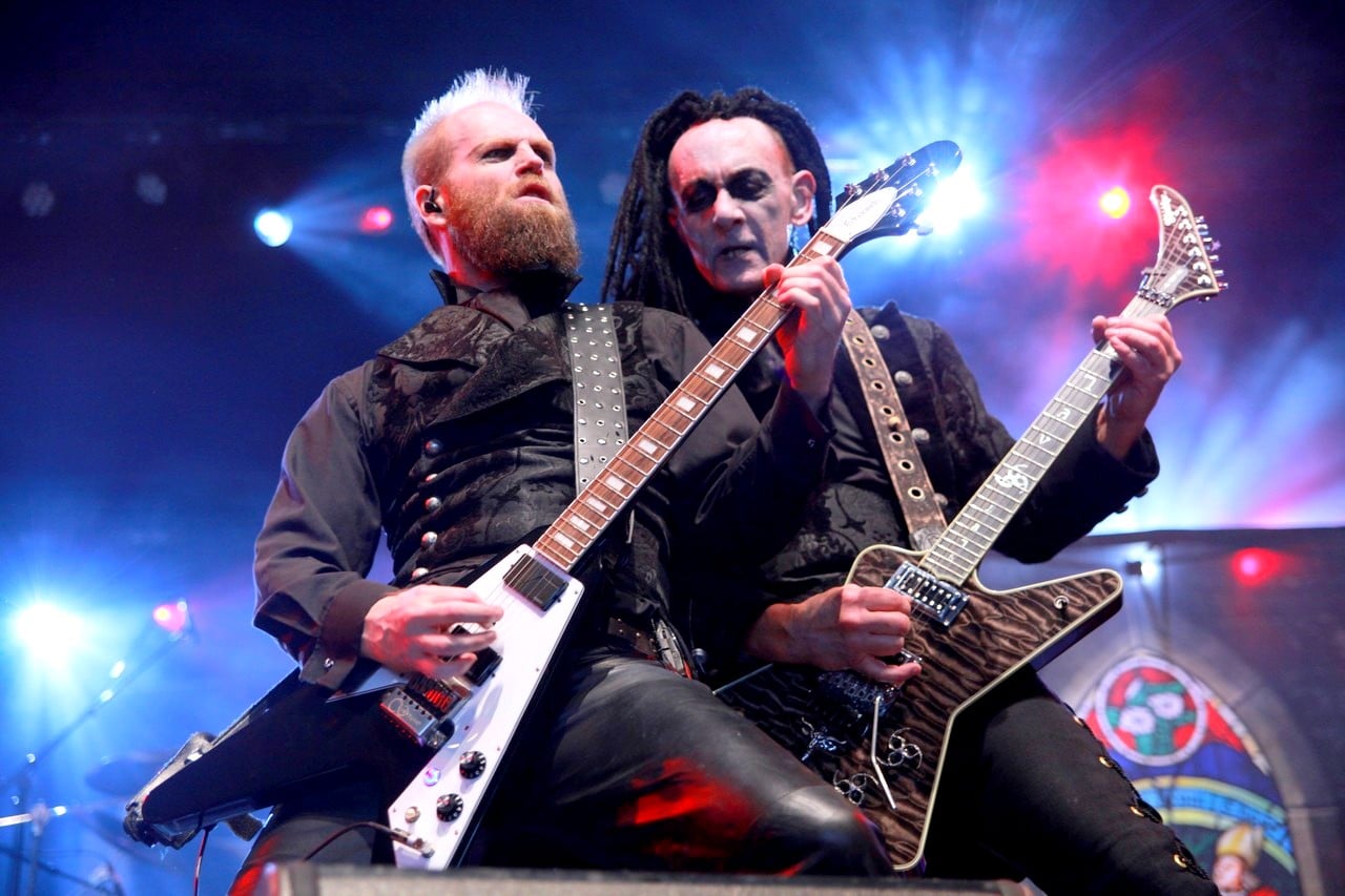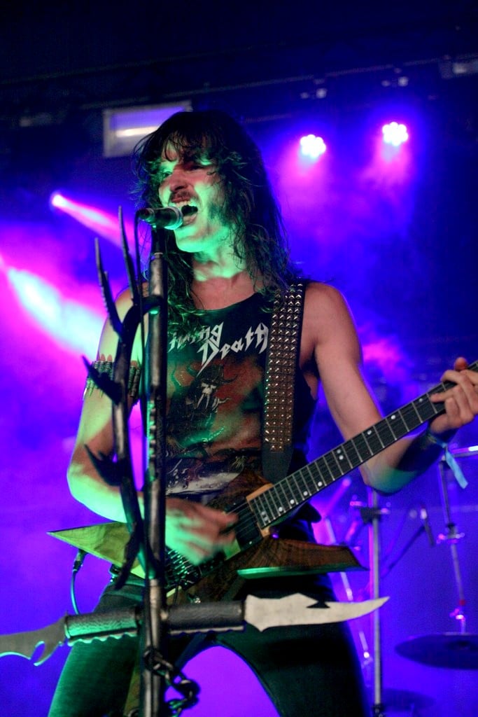 Le show commence avec leur compositions, tirés de leur 1er EP et de “Master of Evil”. On sent vraiment le mélange des deux genres, avec le style caractéristique des deux protagonistes guitaristes mêlé aux lignes de chant plus répétitives de Sean Peck et de sa grande influence de King Diamond. Le son n’est pas terrible, les guitares et la batterie sont très fortes et le chant semble noyé dans la masse, malgré les éclats de voix de Sean, ce qui n’aide pas vraiment à s’imprégner de ce nouveau genre. Viennent alors les premières mesures des morceaux tant attendu de Mercyful Fate, et d’un coup le public se réveille. Mais cela retombe comme un soufflé avec l’interprétation vocale. Malheureusement, Sean Peck n’arrivera pas à convaincre, malgré une certaine prestance scénique. Des performances vocales parfois insuffisantes pour coller aux morceaux mythiques de ce groupe.