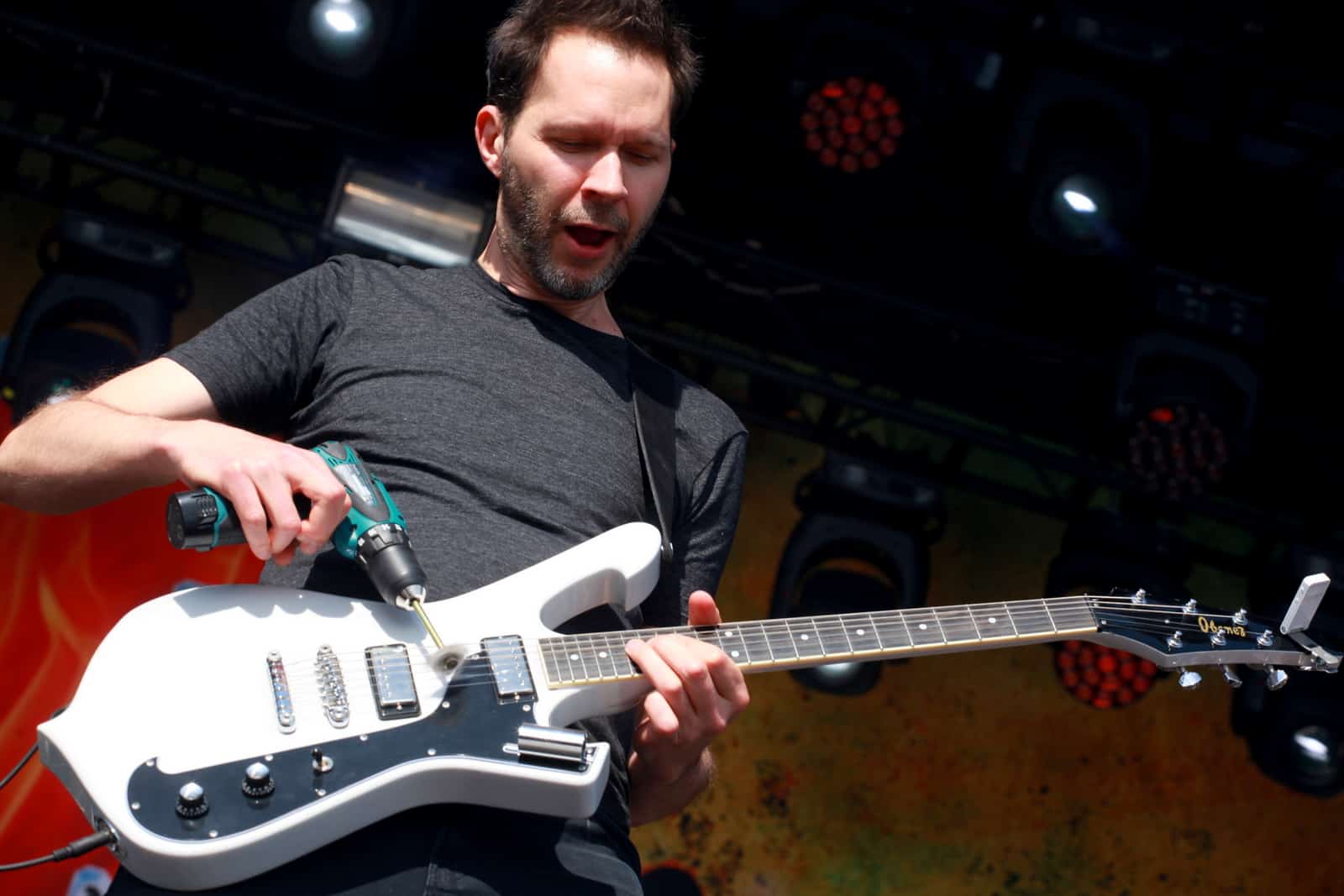 Les guitaristes s’éclatent toujours autant avec leurs perceuses et le chanteur adore jouer avec son pied de micro, qu’il manie tel un volant de voiture.