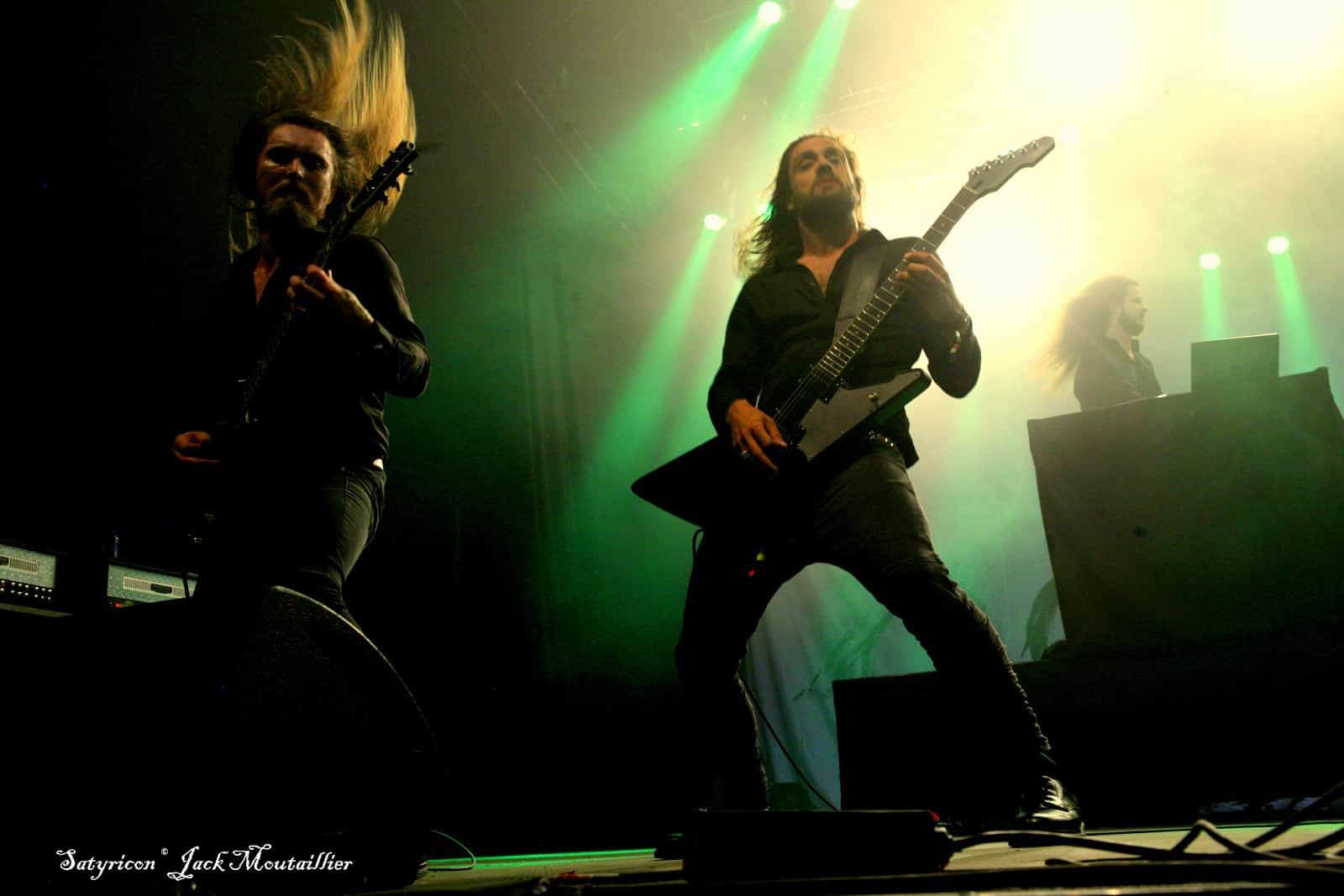 En ce qui concerne la déco, c’est limite messe noire… Salué par le public du festival, le chanteur Satyr ne va pas hésiter a faire participer le public et le faire chanter sur pas mal de titres, comme sur “Midnight Serpent”, qui est le titre du début du show. Présence et charisme black metal alliés à une voix puissante et noire, preque terrifiante, sont les atouts du bonhomme, qui en impose.