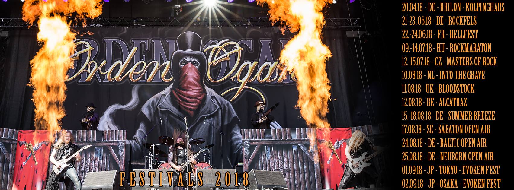 Pour mémoire, voici d’ailleurs quelques dates des festivals (manquent les concerts, bien entendu!) que Orden Ogan a assurés en 2018: