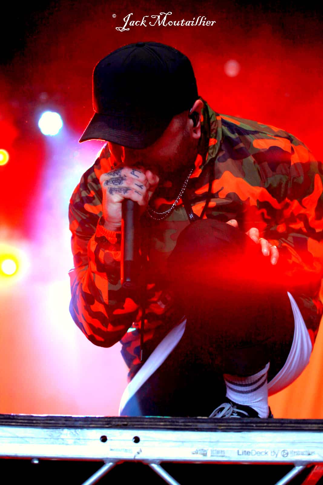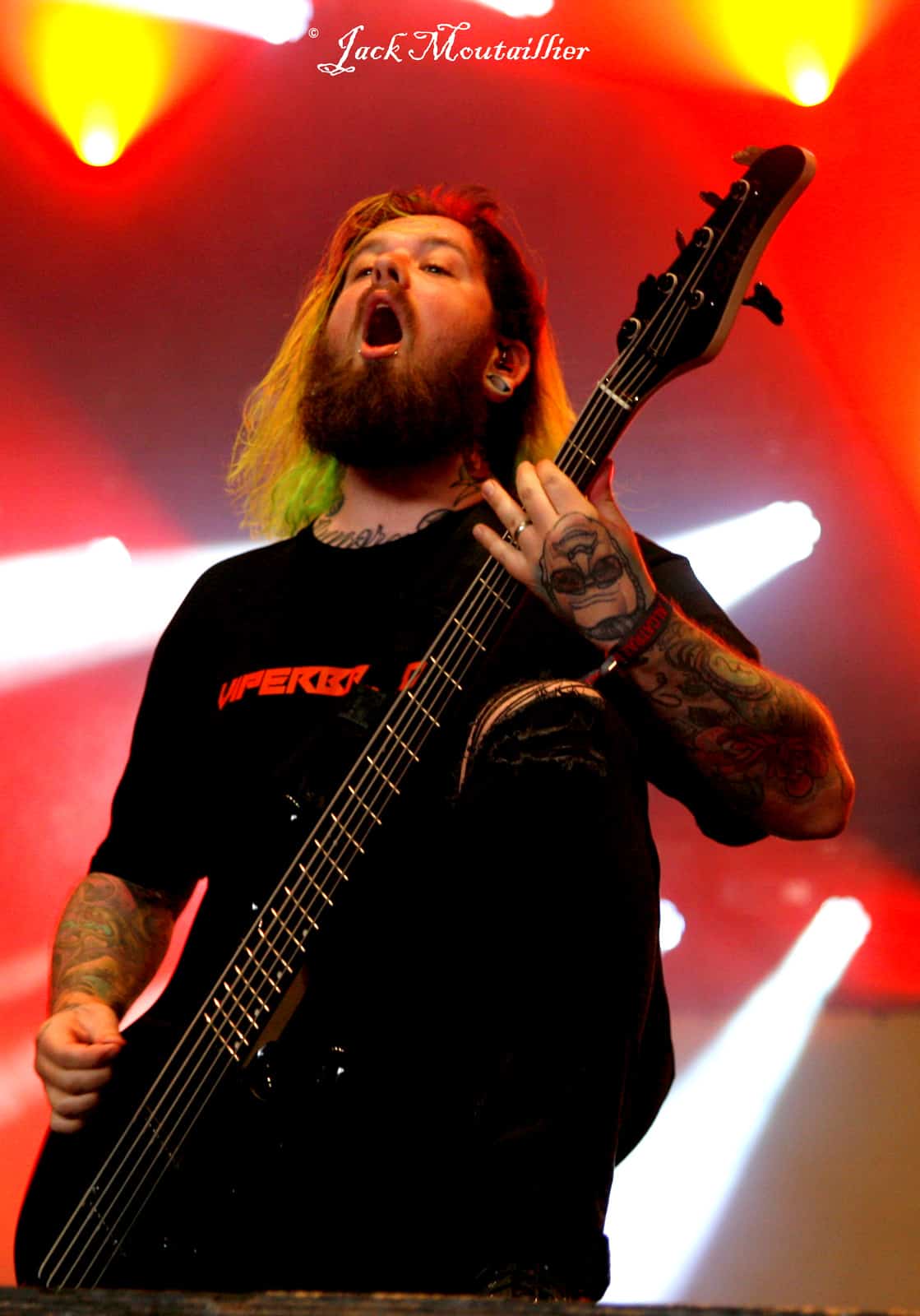 Le chanteur se tiend face aux festivaliers, en tenue de combat et perché sur une rampe qui prend la totalité de la scène. Et à peine les premiers accords joués que c’est “la guerre” sous le chapiteau, qui est plein a craquer. Le chanteur active le feu en provoquant et en réclamant des circle pits à ne plus finir. Les mecs sont rodés à la scène et ils assurent grave! Le public et surexcité et le service d’ordre semble légèrement débordé, vu le nombre de fans bien aguerris à slamer dans le pit photo. Le concert est hyper puissant et il s’en dégage une force rarement ressentie avec d’autres formations. Bravo à BURY TOMORROW, car ce fut un fabuleux moment!