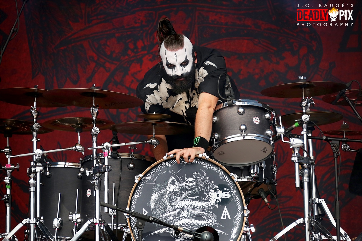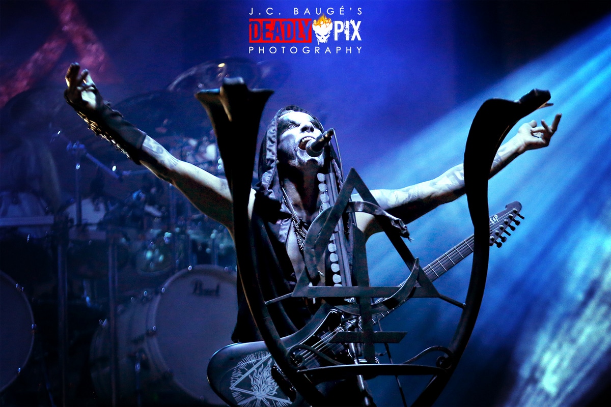Behemoth se donne depuis longtemps les moyens de ses ambitions: large scène avec les fameux pieds de micro “Templum Babalonis” aux cobras entrelacés, pyrotechnie, plates-formes latérales… Zbigniew “Inferno” Promiński est hallucinant de rapidité sur sa caisse claire et à la double pédale, et le chef d’orchestre Adam “Nergal” Darski vocifère comme on n’osait plus l’espérer, en 2010, à l’annonce de sa leucémie. Que vous soyez ou non gros consommateur de death, le prochain album studio Opvs Contra Natvram (16 septembre, chez Nuclear Blast) doit absolument figurer en top priorité sur votre liste au Père Noël.
