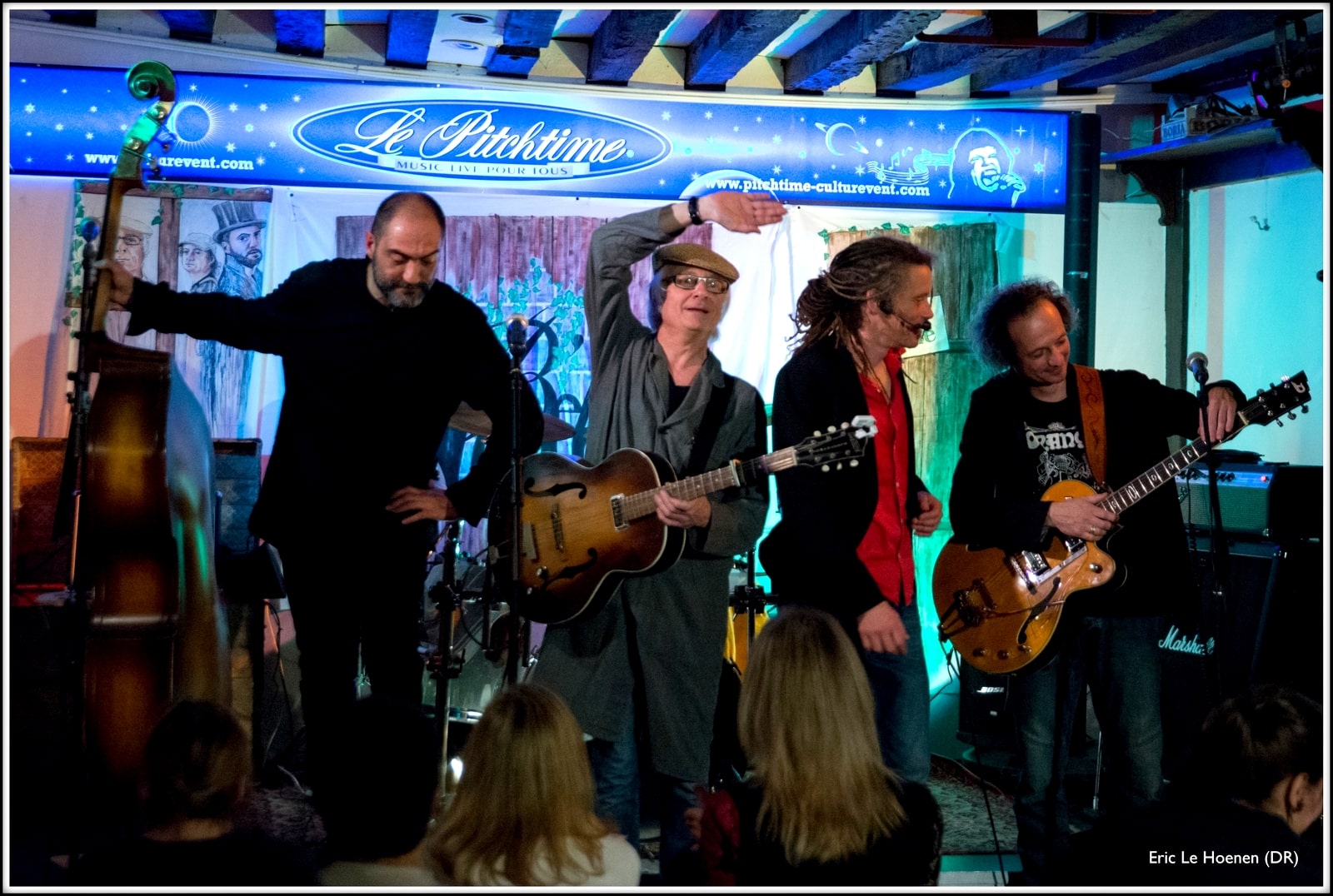 Dès le premier titre, ils donnent le ton, avec une bien bonne recette mixant les ingrédients raffinés de la contrebasse, des guitares, de la voix d’Hervé et de la complicité de Rico. Je ne vous parle pas des tenues, disons même “costumes”, qui ajoutent une touche de magie, une grandeur supplémentaire à ce set.