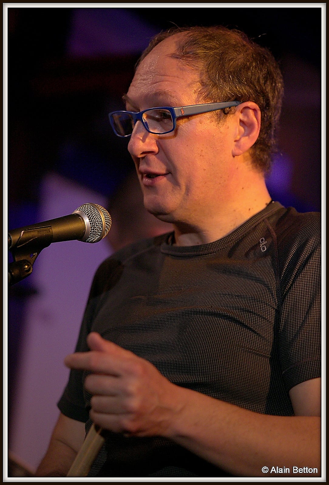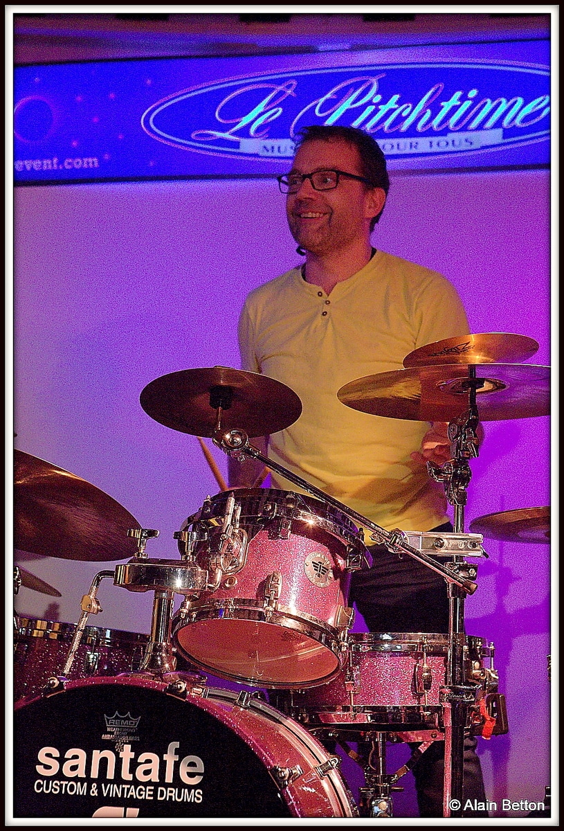 Sandra, au milieu du public, viendra ensuite tendre son micro pour que chacun puisse reprendre en chœur un refrain. Des amis musiciens se joindront à la fête pour partager quelques titres: deux harmonicistes, Jean-Christophe Tavot et Marc Vincent, un batteur, l’incontournable ‘le prof’ Didier Joubert avec qui Dom a fait ses premières armes sur, il me semble, ce titre ‘The Stumble’ de Freddie King, et bien sûr Alain Sabbatier, le Boss du Pitchtime, aux baguettes également sur ‘Rock me Babe’ de BB King.