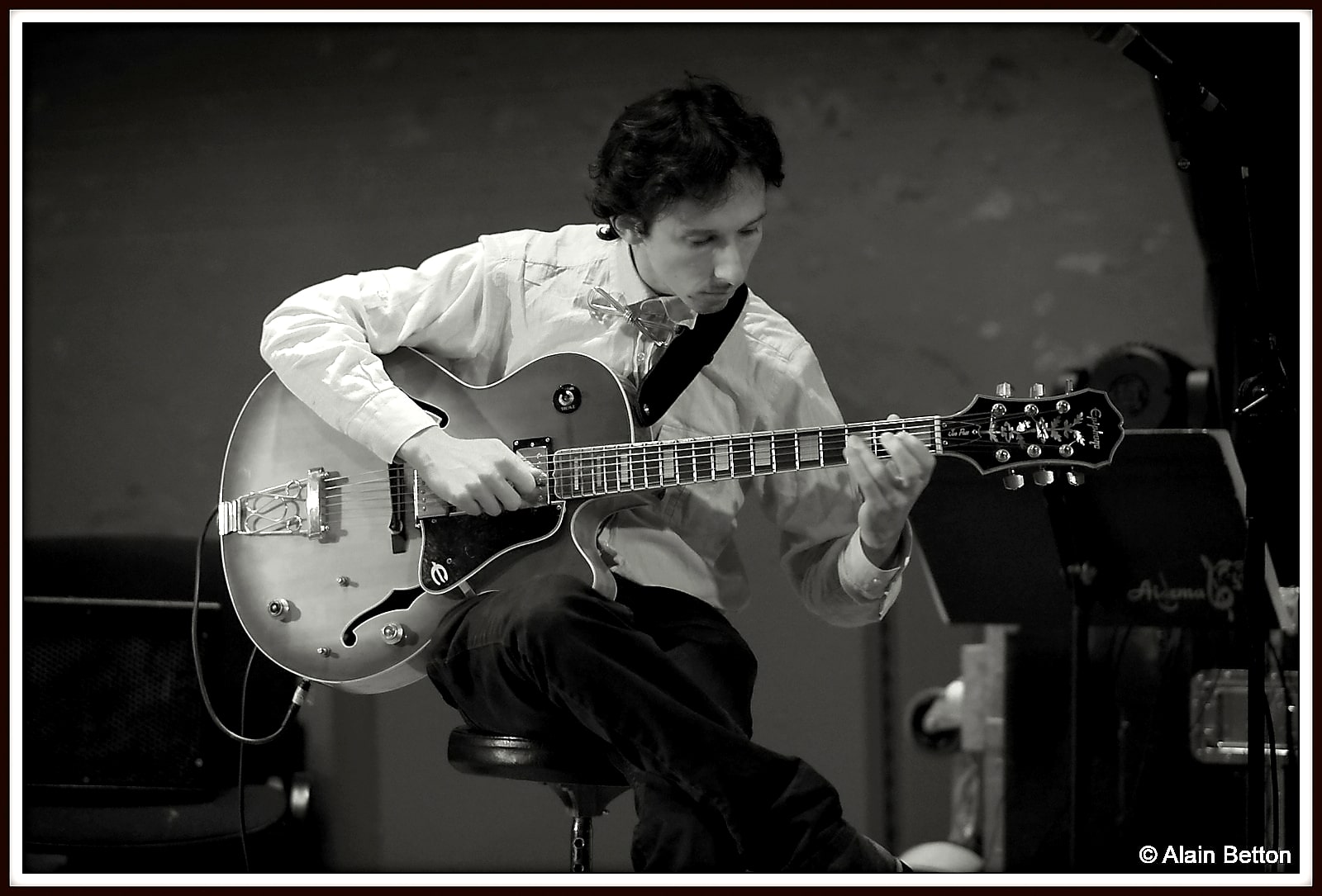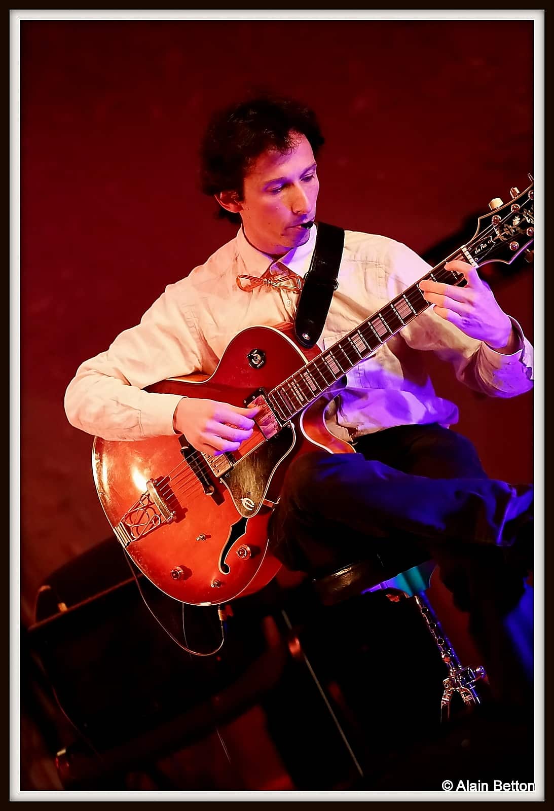 Deux compositions originales de Laurent ML seront jouées, ‘Les coquillages’ et ‘Where is my cellphone’. Nous sommes sous le charme, conquis par la sensibilité du jeu et de la technique de chacun de ces talentueux musiciens. Lorsque s’envolent les notes au clavier, lorsque les balais effleurent la caisse claire et que les baguettes exorcisent les cymbales, lorsque fusent les accords jouissifs des cordes de l’Epiphone, le public est aux anges.