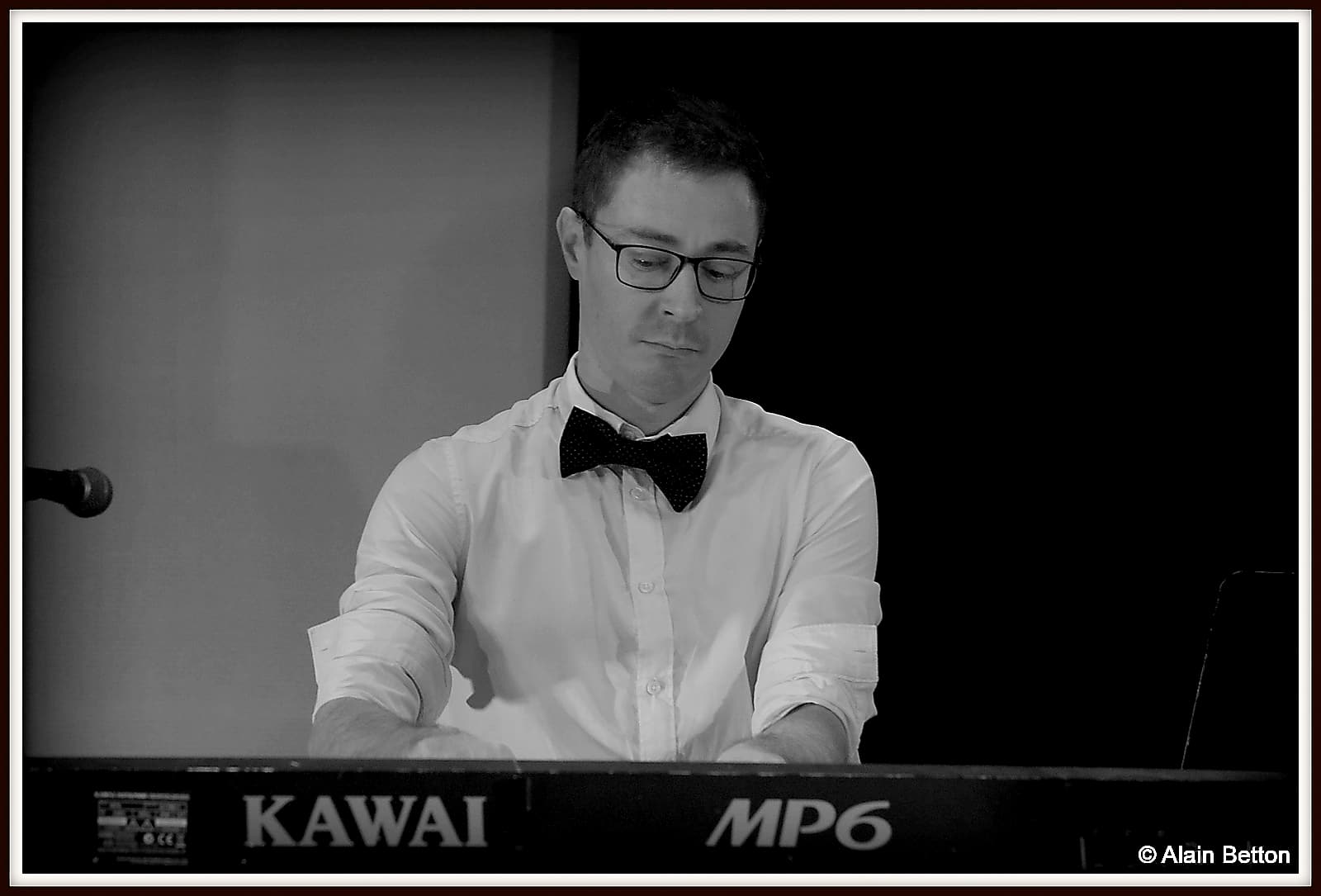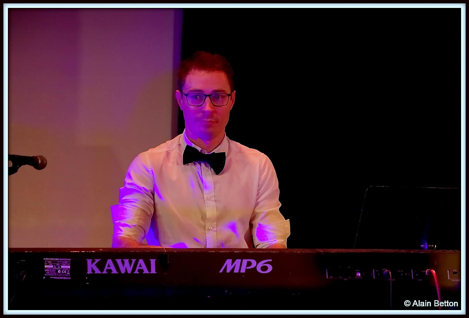 Dès 20 heures 30 le trio Colporteurs composé de Alex Vallés au piano, Yann Gicquel à la batterie et Laurent ML à la guitare, prend place sur scène.