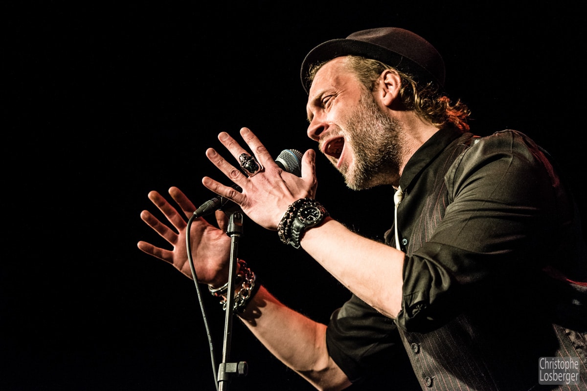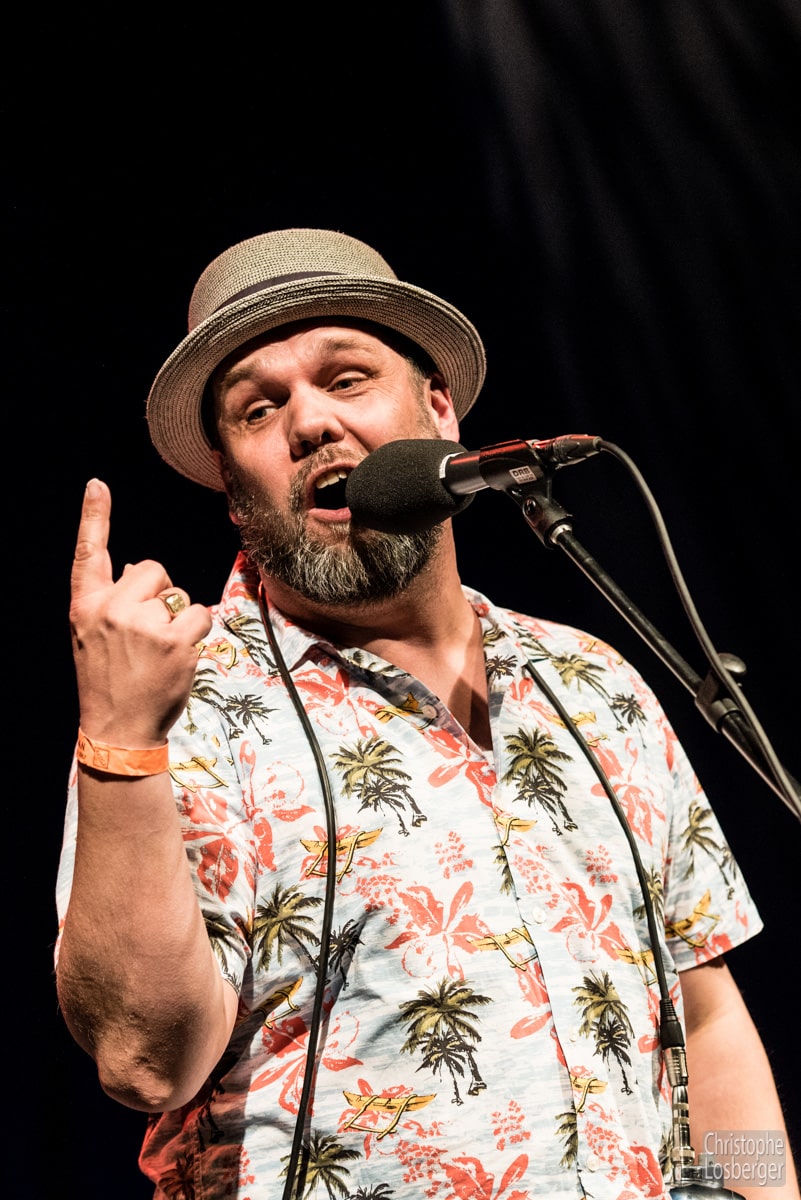Avec les belges de The Bluesbones et les suisses du Pascal Geiser Band on retrouve un blues plus classique. Nico de Cock, chanteur et leader des Bluesbones possède une voix puissante lui aussi et est soutenu par un groupe très homogène d’excellente facture, alternant solos de guitare (Stef Paglia) et hammond (Edwin Risbourg) sur une excellente section rythmique. Le suisse Pascal Geiser en excellent showman a su attirer le public, l’amener dans ses histoires, l’amuser et l’attendrir. Lui aussi était soutenu par un excellent groupe et notamment une section de cuivres incisive, nette et précise comme une horloge suisse, qui a probablement fait la différence avec d’autres groupes.
