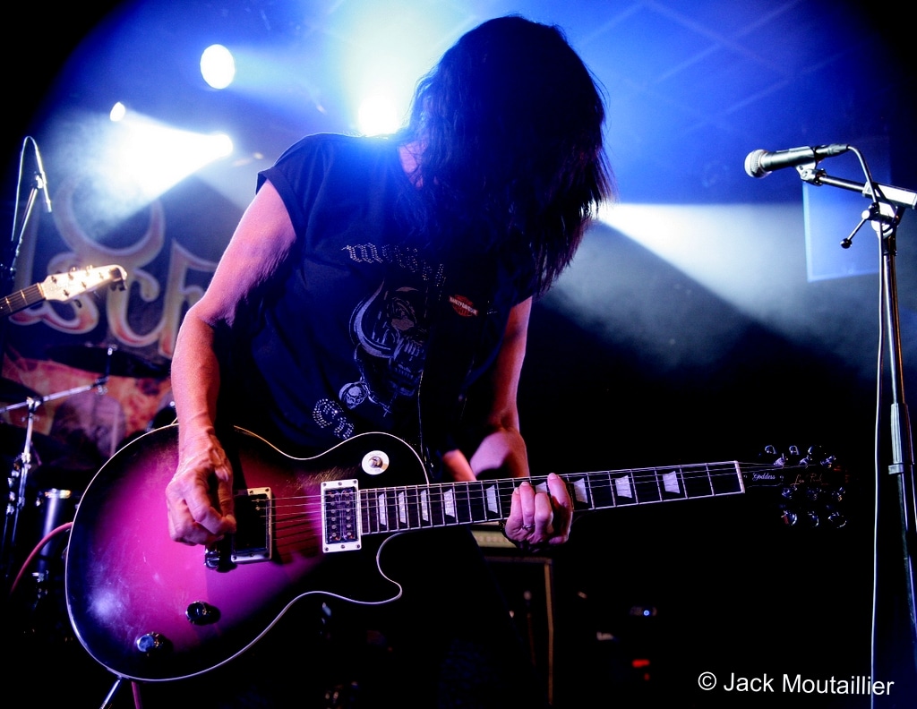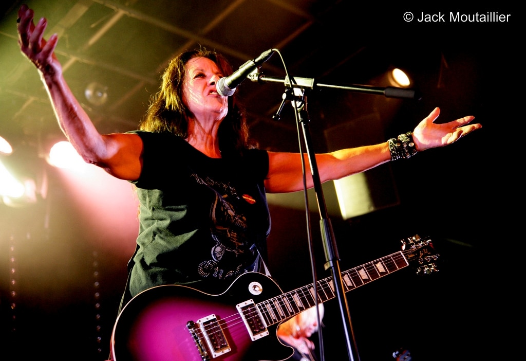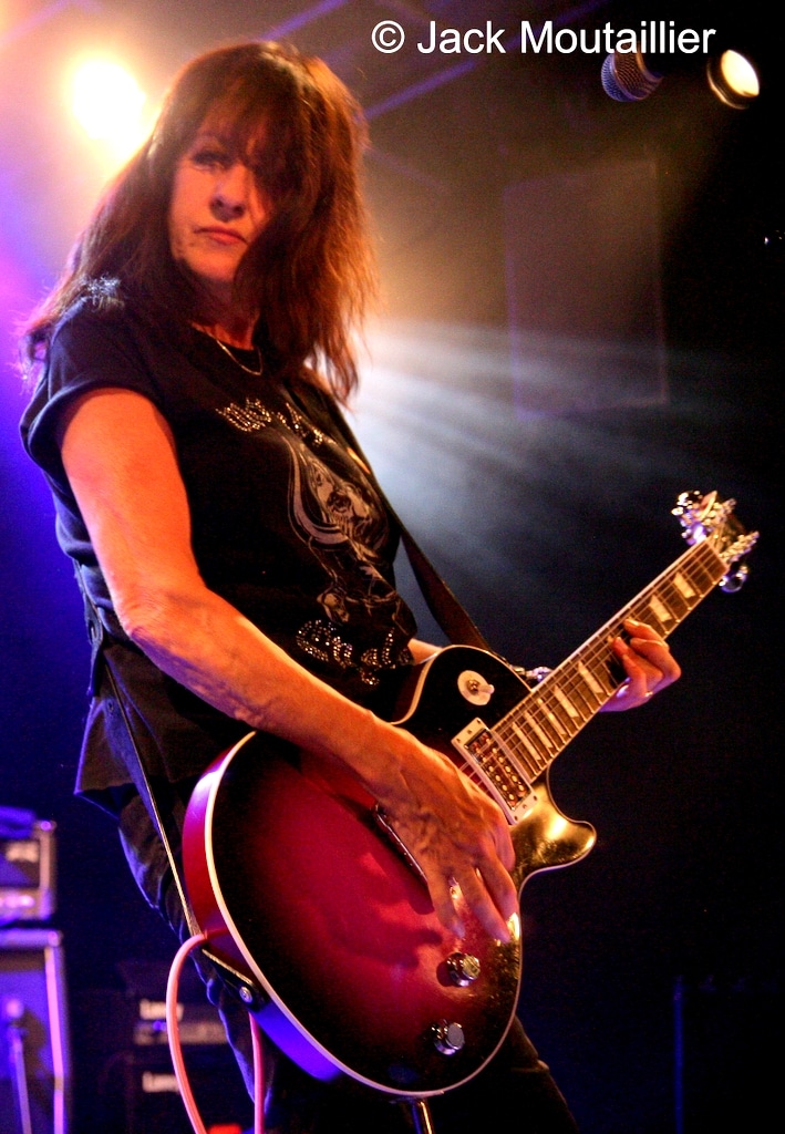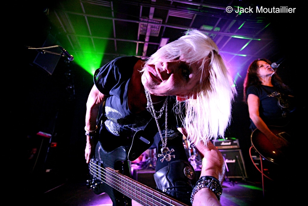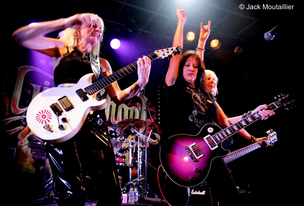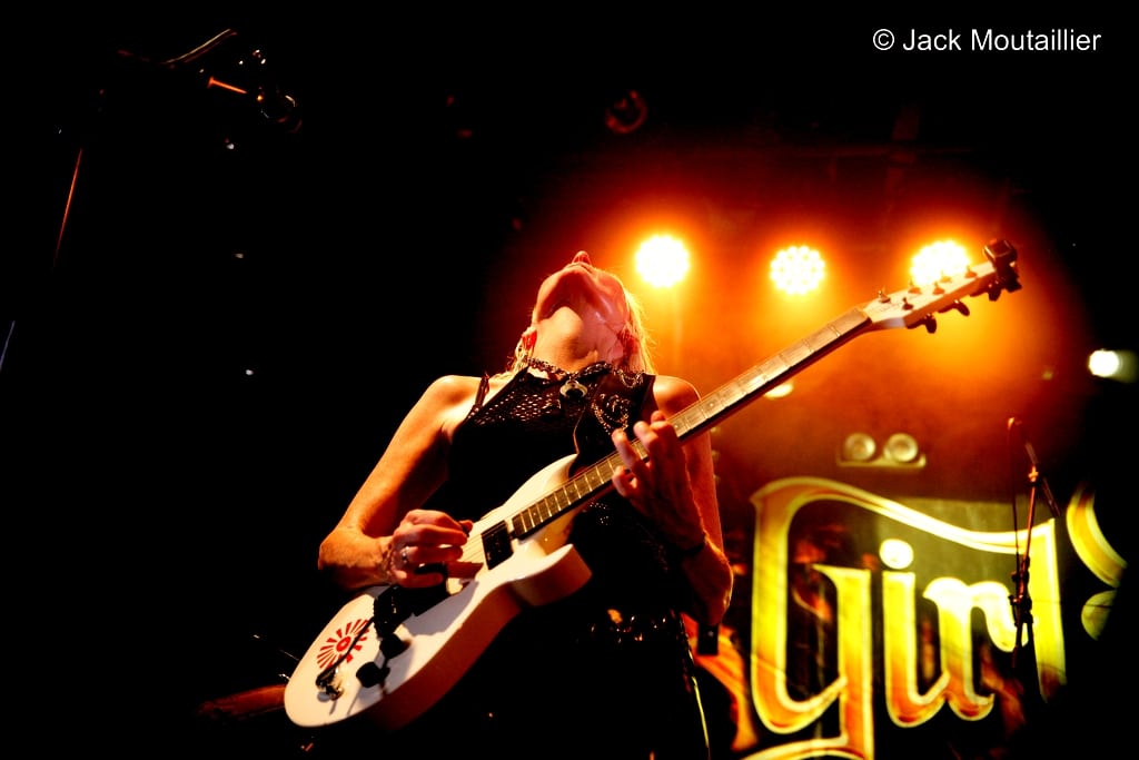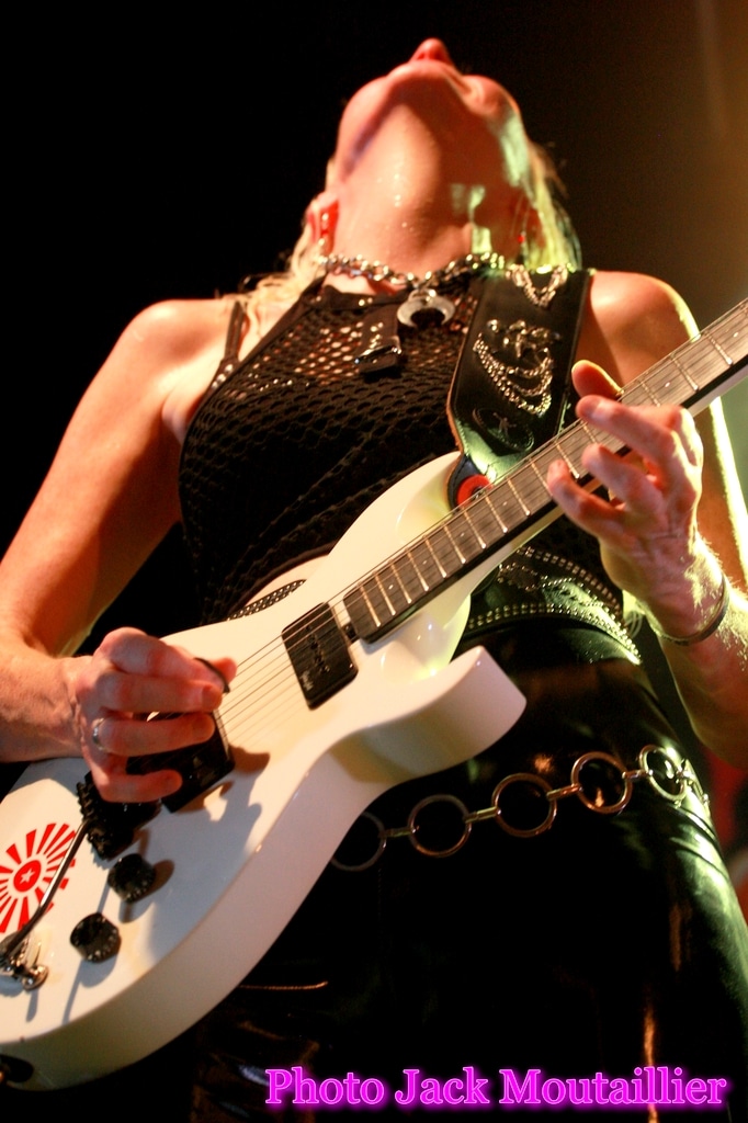 Sans plus attendre, les Girlschool montent sur scène sous les acclamations du public qui semble n’attendre que ce groupe de ‘vétérantes’ du rock’n’roll. Je dois bien reconnaître qu’elles semblent toutes en très grande forme et que ça joue grave! Les copines de Motörhead sont excitées a mort et elles envoient sans retenue aucune. C’est franchement impressionnant, surtout que cela fait un moment que je ne les avaient pas vues avec autant de hargne sur scène. Du coup, la chaleur dans la salle est difficile a supporter… Malgré cette ambiance suffocante, ça n’arrête pas sur scène! Girlschool en Live, quel grand moment!