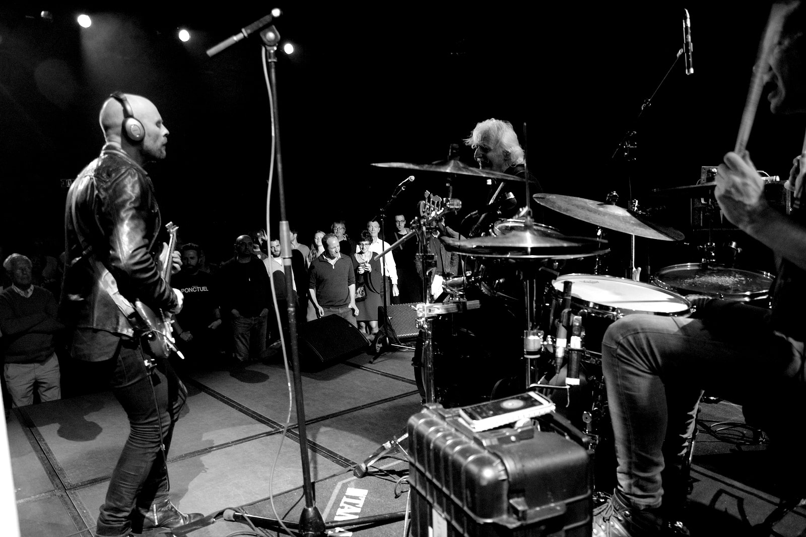 Le show commence et oh, stupeur, il règne un climat limite glacial dans le public… Je me retourne, surpris. En fait, tout le monde, ou presque, s’est assis au fond de la salle, comme si tout le devant de la scène était limité aux 3 ou 4 photographes présent ce soir…