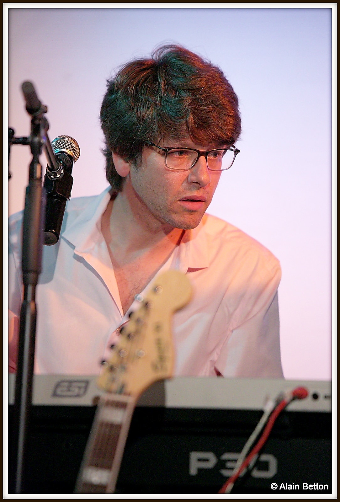 Place à la découverte, place au live, laissons les ondes positives nous envahir. Jason Kingsley est sur scène avec à ses côtés l’incontournable Fred Kolinski à la batterie (c’est d’ailleurs un grand plaisir pour nous de le retrouver ce soir) et Philippe Demoor à la guitare électrique, nouveau venu auprès de Jason, et qui nous étonnera durant toute cette soirée par son jeu incisif et créatif.