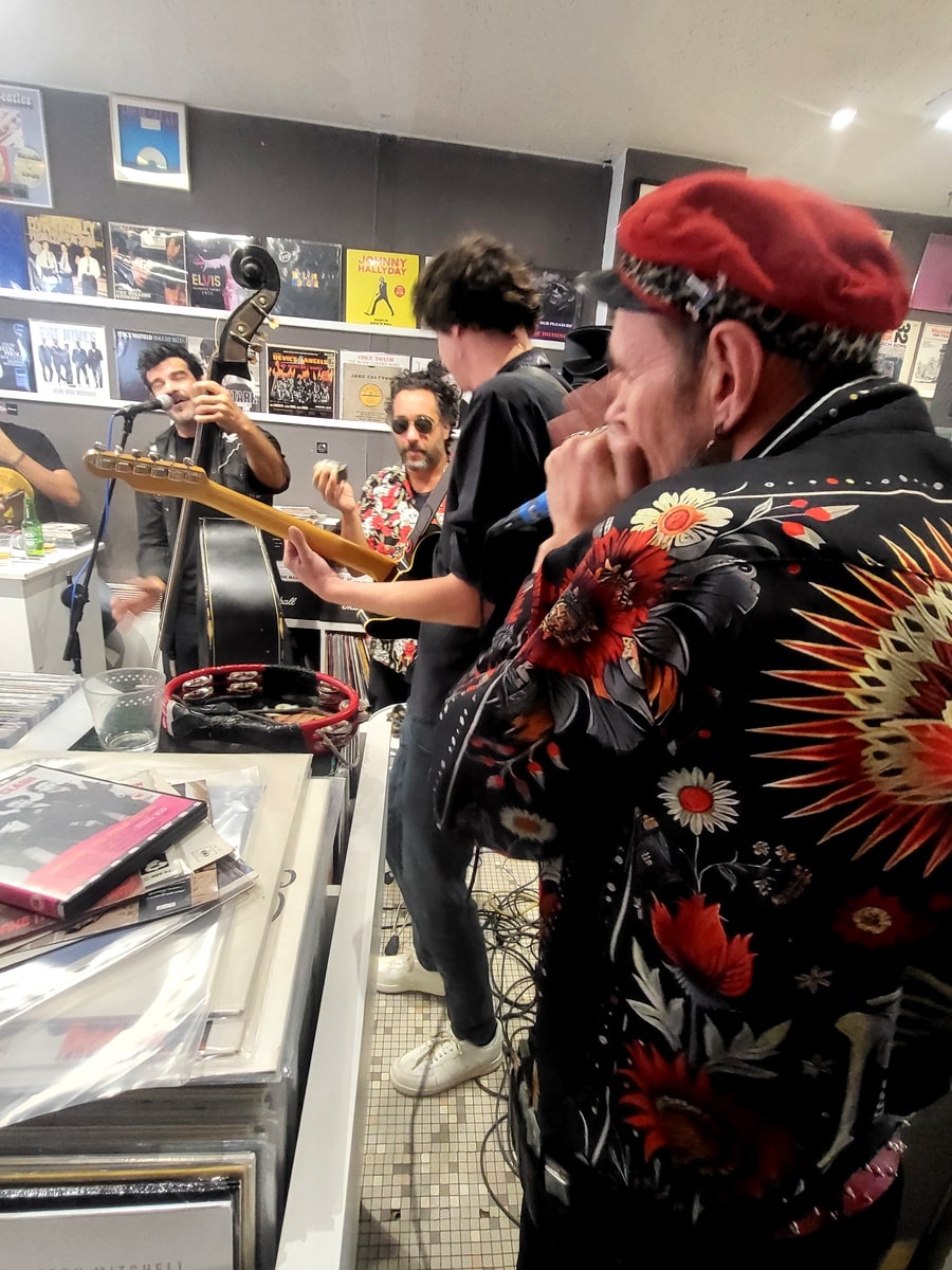 La preuve, la veille de ce showcase, Johnny et ses fidèles desperados mettaient le feu en ouverture de La Fête de l’Huma édition 2024, qui même délocalisée dans l’Essonne, n’en demeure pas moins une date importante dans la carrière d’un musicien, une date à marquer d’une pierre blanche. Ce grand rassemblement créé par Marcel Cachin aura vu défiler sur ses planches de La Courneuve des pointures du rock’n’roll et de la chanson contestataire et réaliste, telles que Léo Ferré, The Who, Chuck Berry, Jerry Lee Lewis, The Kinks, François Béranger, Jacques Higelin, Renaud, Dick Rivers, Little Bob, Les Wampas et bien d’autres… C’est énorme car quelles que soient ses propres opinions politiques, Johnny Montreuil et ses acolytes auront inscrit dans le marbre des archives de la Fête de l’Huma, leurs noms, non pas en filigrane, mais en lettres d’or indélébiles. Mais comme le stipule ce vieux proverbe du XVIème siècle: tout vient à point à qui sait attendre et ce satané showcase était bel et bien prévu pour le samedi 14 septembre, à 15h00.