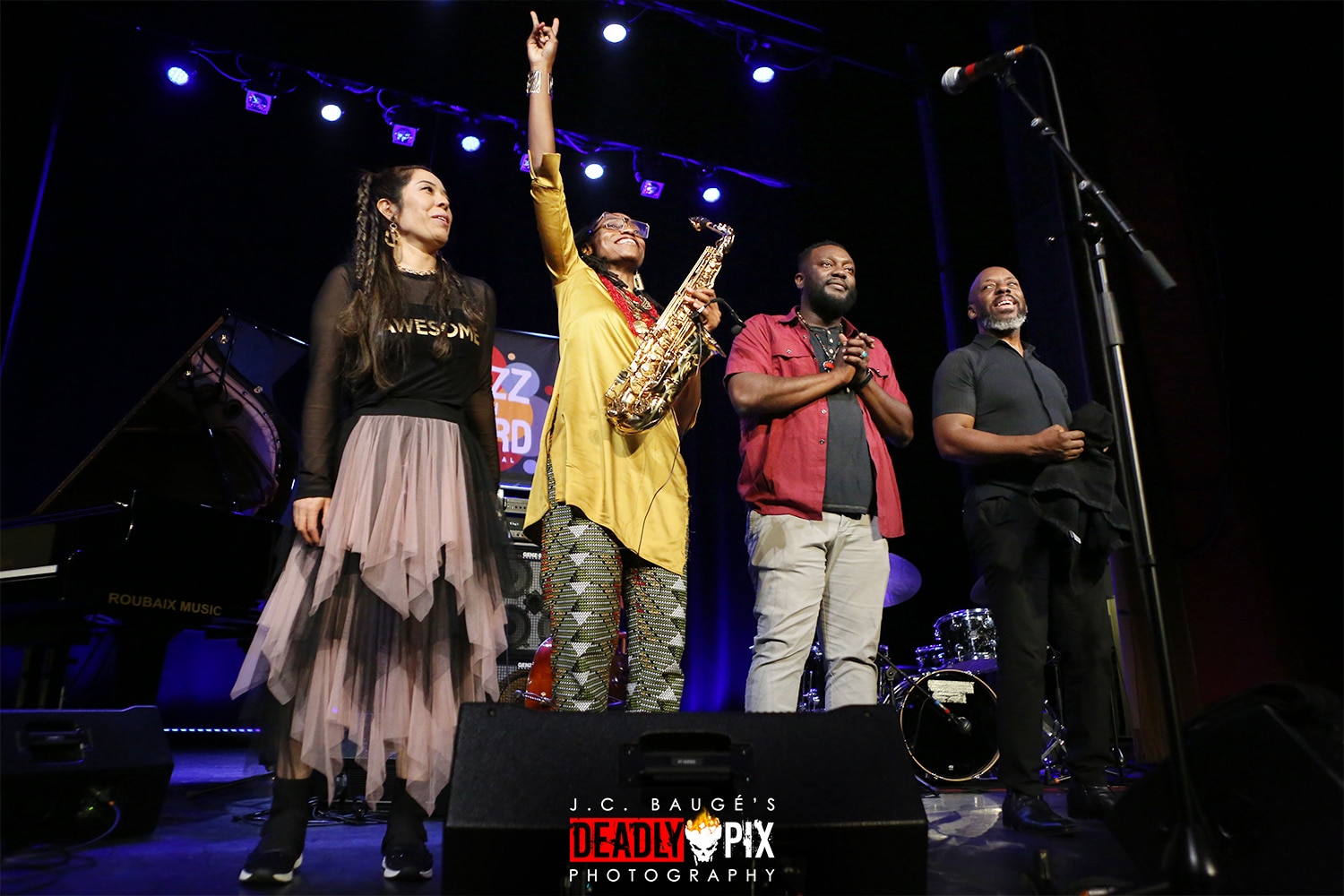 La New-Yorkaise Lakecia Benjamin, en tournée promotionnelle de son troisième album Pursuance: The Coltranes (2020), hommage à l’héritage du couple mythique et mystique John et Alice, fait montre d’une technique redoutable et d’un goût certain pour s’entourer. Transposant toutes les partitions en Mi bémol pour le sax alto, elle s’affranchit de la justesse toute relative du soprano ainsi que de la virilité intranquille du tenor du maître, pour homogénéiser son brouet. Le set, à large dynamique, passe comme sur des montages russes du duel sax/ batterie avec le batteur E.J. Strickland sur “My Favorite Things”, à la contextualisation d’”Alabama”, écrit par John Coltrane en réponse à l’attentat de Birmingham, en 1963, perpétré par le Klu Klux Klan, ayant tué quatre jeunes filles dans une église baptiste.