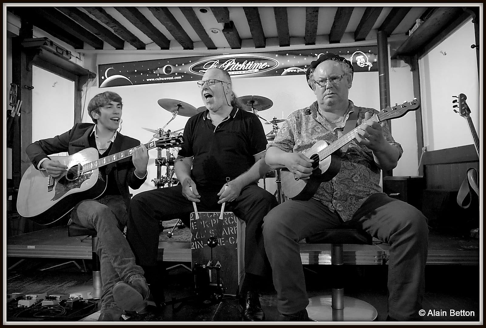 Après une petite pause bien méritée pour se rafraichir, non pas les idées mais plutôt le gosier, car reprendre et chanter en chœur avec le trio certains refrains, cela donne soif, nouvelle immersion dans l’univers du groupe avec trois compos, “A-Boogie”, un Blues bien rythmé et Boogie comme il faut et comme son nom l’indique, puis “I Remember”, chanson au texte poignant et très fort dont Flo vous fait ressentir toute la charge émotionnelle, et “Un soir de Blues”, le seul titre chanté en français, citant avec complicité et affection ces vieux lascars qui accompagnent Flo sur scène.