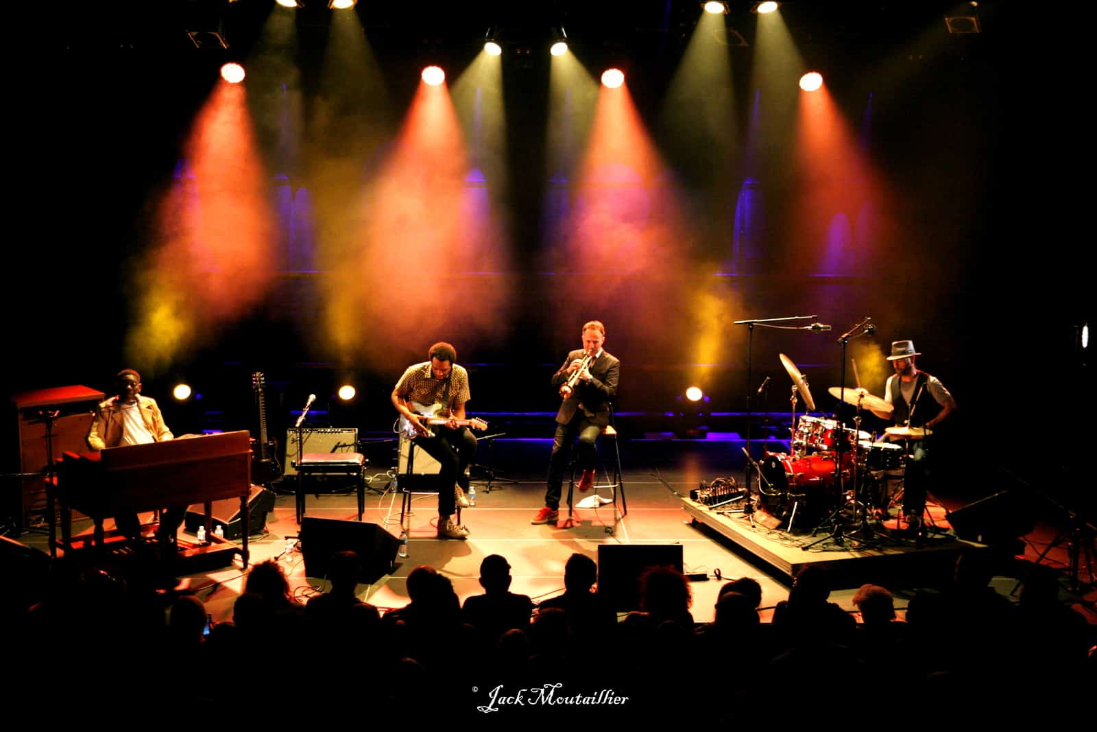Avec Lucky Peterson à l’orgue, nous avons sur scène ce soir l’excellent Ahmad Compaoré à la batterie, Kelyn Crapp, un guitariste de haut niveau, à la six cordes, et le trompettiste Nicolas Folmer, hyper classe, et dont le jeu tout en finesse a été plusieurs fois salué par des ovations méritées.