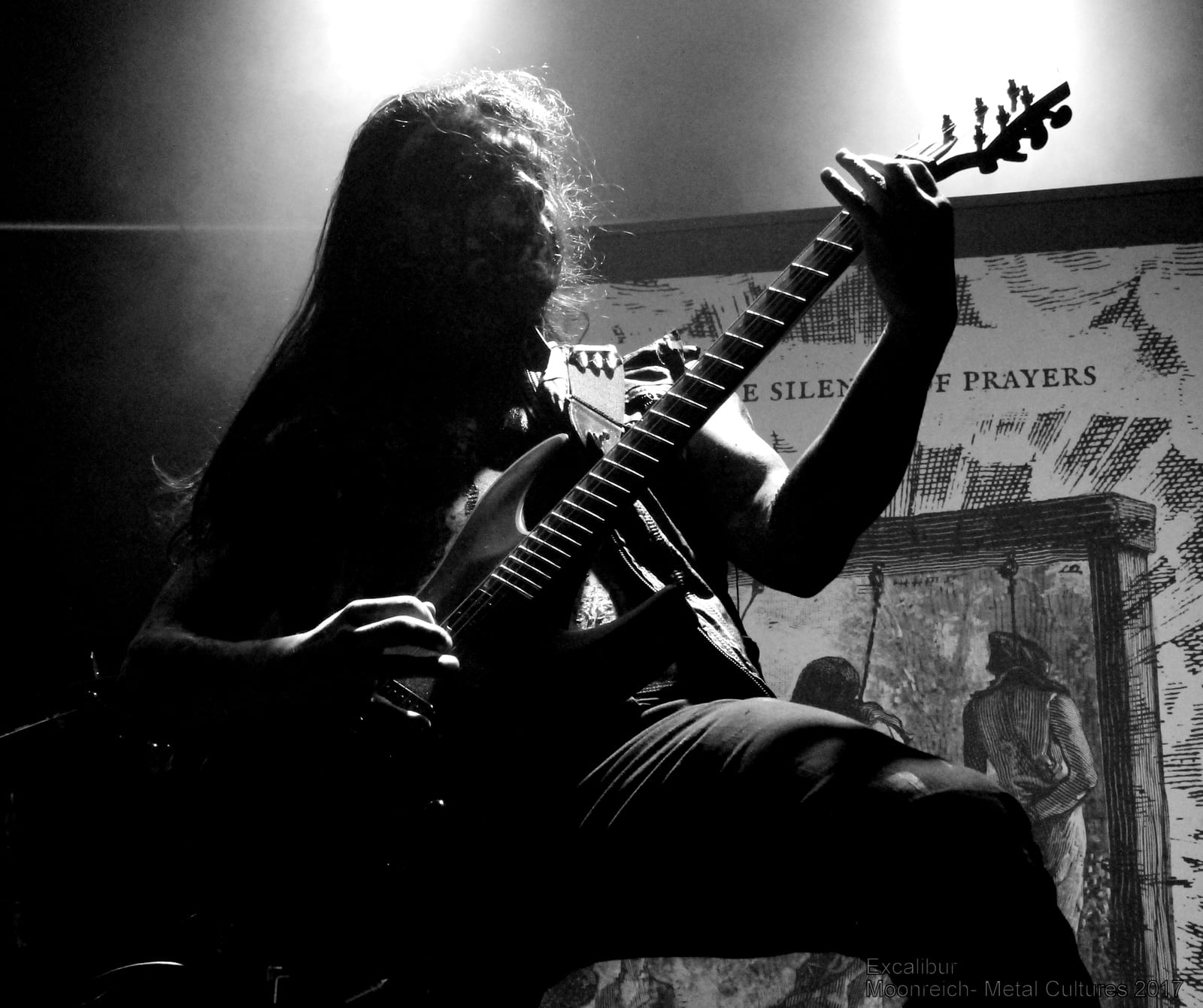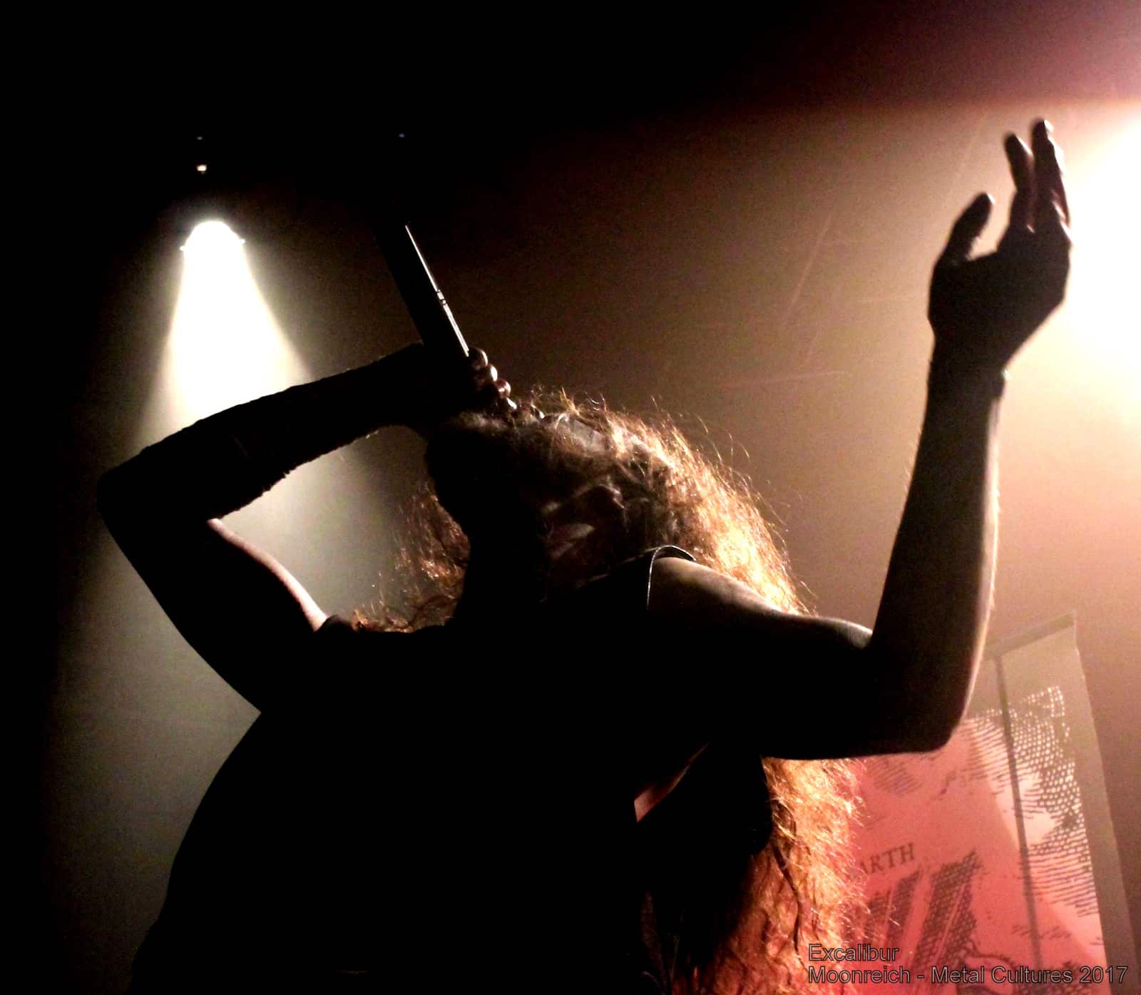 Puis venaient les parisiens de Moonreich, avec un set de black metal aux codes classiques : décor épuré, peintures blanches et noires sur les visages, lumières blaffardes.
