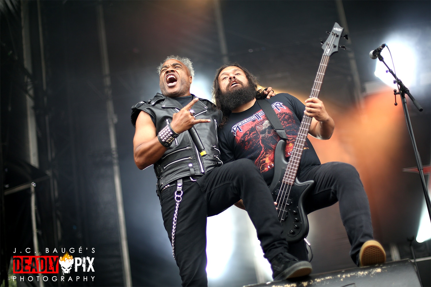 Miracle ou mirage ? HIRAX et EXUMER, qui ont infusé le monde du thrash avec deux marqueurs de décivilisation, Raging Violence (1985) et Possessed By Fire (1986), rappellent les états de sévices de Katon De Pena, lanceur de regards exorbités, et Mehmet “Mem Von Stein” Zendut, champion de sauts carpés, aux cinquantenaires oublieux. TERRORIZER, source d’inspiration pour le magazine anglais du même nom en 1993, ressort les cadavres en plastique du placard, ainsi que le cultissime World Downfall de 1989, premier album de grindcore correctement produit (par Scott Burns). Pete Sandoval, 61 ans, démissionnaire de Morbid Angel en 2013, est toujours alerte à la double pédale. ROTTING CHRIST, qui a échangé de créneau avec GORGOROTH, joue son premier Motocultor sans poursuite, tirant profit du crépuscule pour nimber le conclusif “Grandis Spiritus Diavolos” d’un voile encore plus hypnotique. Enfin, AVANTASIA, projet collaboratif opéra metal lancé en marge d’Edguy par Tobias Sammet en 1989, replace le son et la lumière au centre des débats. Le maître de cérémonie, cool au sens d’élégant sous la pression, tête d’affiche oblige, tient la dragée haute à des invités de la trempe de Geoff Tate (ex-Queensrÿche) et Adrienne Cowan (Seven Spires), références en matière de voix claires.