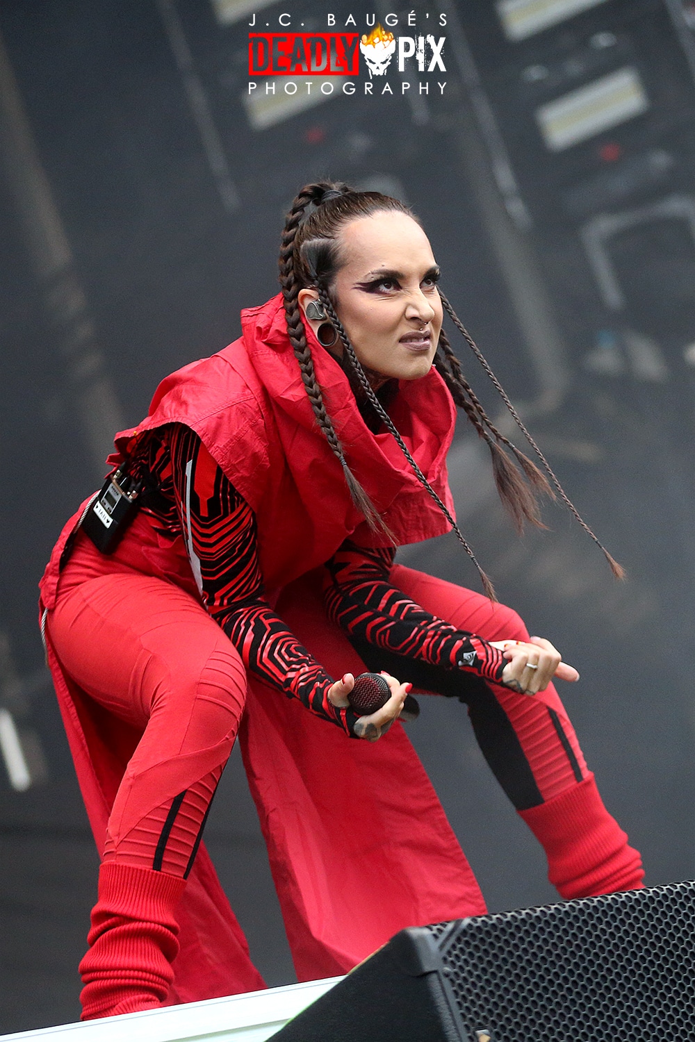 Après 35 ans de carrière dans l’underground le plus miteux, INHUMATE amorce son grand raout d’adieux auprès du lumpenprolétariat. Comment ne pas demeurer interdit à la vue de Christophe Knecht, un pied dans le grind, l’autre dans le death, qui dispense des tutoriels sur le vivre ensemble (“Vous entendez du bruit, vous bougez. Vous n’entendez plus de bruit, vous attendez”), se scarifie le front avec son micro, et s’offre en victime expiatoire aux belligérants de son propre wall of death? L’acmé de la bordélisation. La combinaison “seconde peau” dans laquelle s’est glissée Tatiana Shmayluk (Jinjer) au Motocultor 2018 n’a pas laissé que des traces dans le slip des photographes du premier rang: Elena Cataraga, chanteuse dreadlockée des nu-métalleux moldaves d’INFECTED RAIN, ne jure désormais que par le collant en lycra intégral. Pleurera-t-elle encore (de joie) sur commande lors de la tournée Motocultor Across Europe de janvier 2025 avec Semblant, Elyose, Skin On Flesh et Miruthan? Le festival, qui a entériné le privilège rouge, aime à tendre le micro aux islamo-gauchistes à pulsion totalitaire comme s’ils étaient l’oracle de Delphes: BAMBIE THUG, personnalité au minimum trouble qui a milité pour l’exclusion d’Israël au concours Eurovision 2024, file ainsi sa doxa impérieuse, drapée dans les couleurs palestiniennes. Que le faux Death (LEFT TO DIE) ou le vrai KK’S PRIEST liquide les vieux clivages importe peu aux fans, partis en nombre se restaurer… ou se challenger à Guitar Hero dans le carré VIP! Avec cet humour pince-sans-rire qu’on connait surtout à Ian Anderson, de Jethro Tull, Mikael Åkerfeldt présente OPETH comme un groupe jouant du rock pour payer les factures. Une gageure lorsqu’il reprend en une seconde et deux accords le “You Suffer” de Napalm Death. En after, SKYND, port de tête altier et démarche de poule pondeuse, souffle le chaud (“Tyler Hadley”) et beaucoup de froid (“Violets Are Blue”) dans ses revisites des crimes sanglants de notre temps.