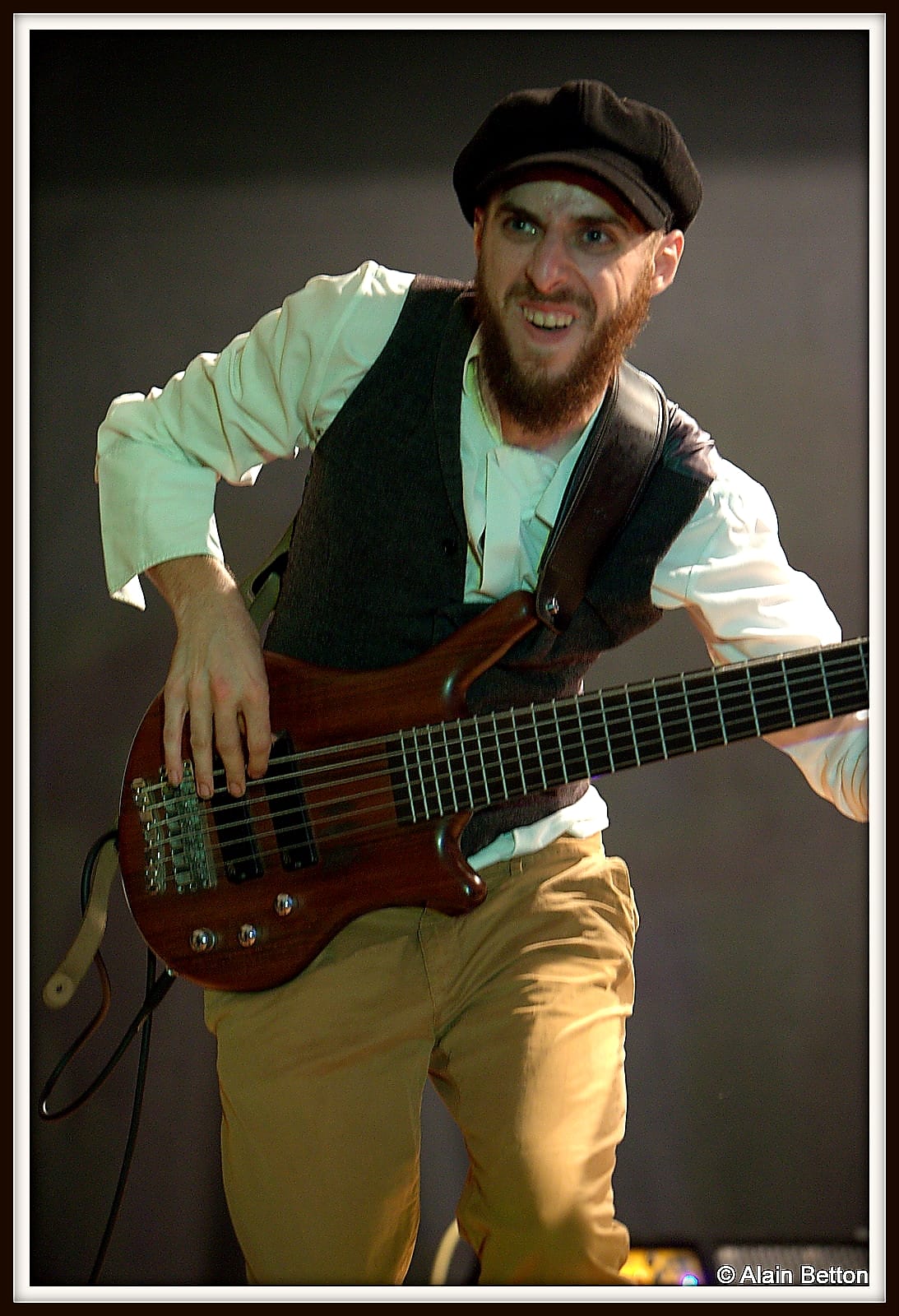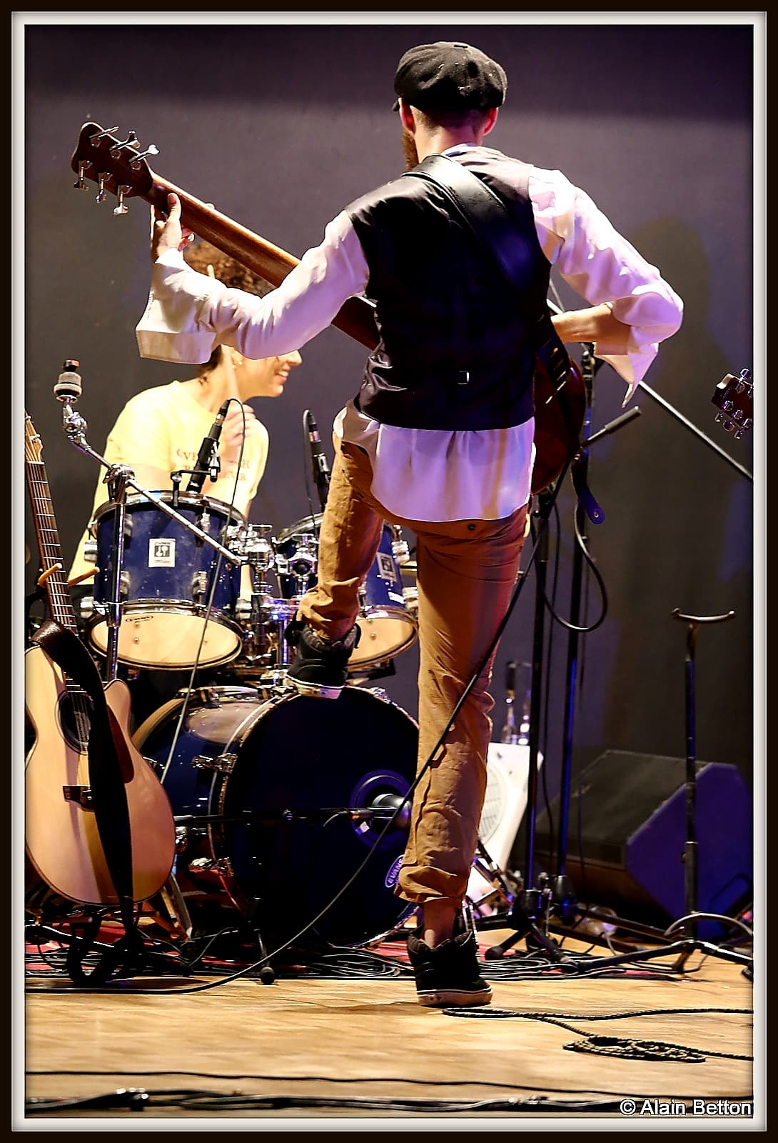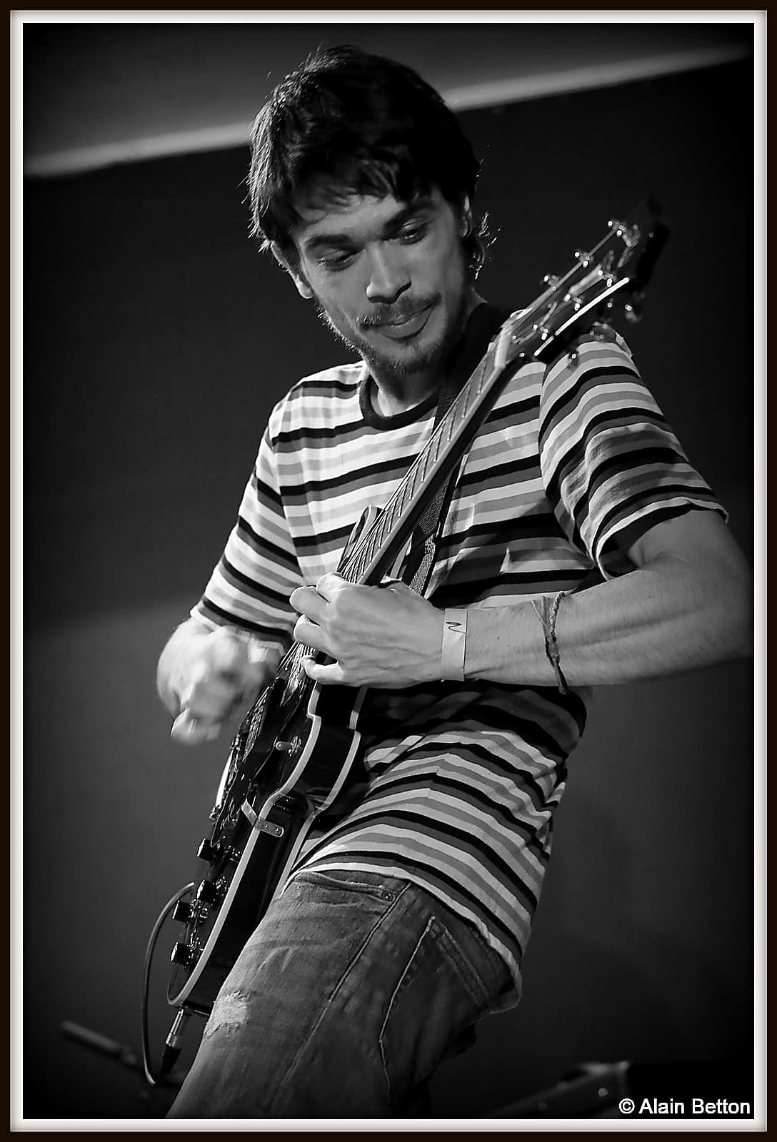 A nouveau, mais cette fois-ci ayant revêtu son habit de lumière, Guillaume nous fera une superbe démonstration de son jeu à la basse. Lui également, complice de tous les instants, le pied sur la batterie de Doriane, la main sur l’épaule de Riccardo ou au plus près de Mickael, comblera le public comme il se doit.