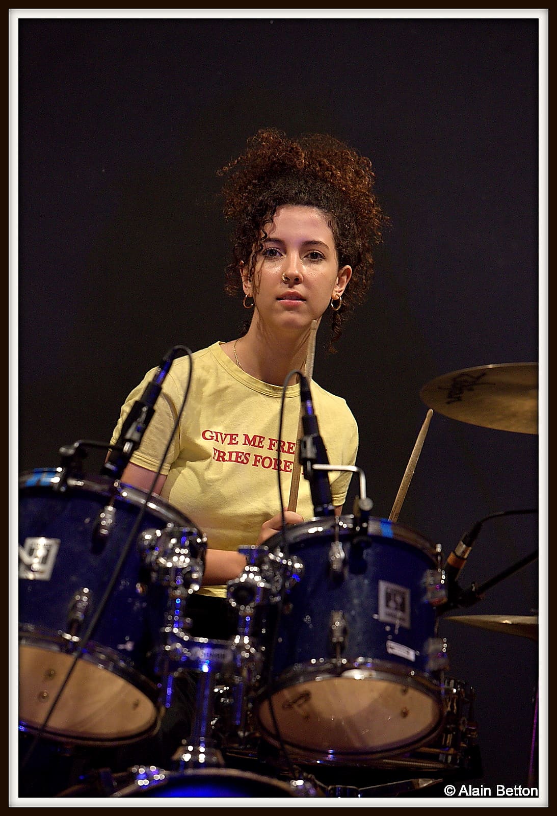Doriane Gamba apprivoise le temps de sa maîtrise comme si ce dernier n’avait aucune emprise sur elle. Métronome derrière ses fûts, elle le ralentit ou l’accélère au gré de ses envies et du tempo. De plus, connaissant les facéties scéniques de ses trois compères, avec brio elle sait parfaitement les mener à la baguette.
