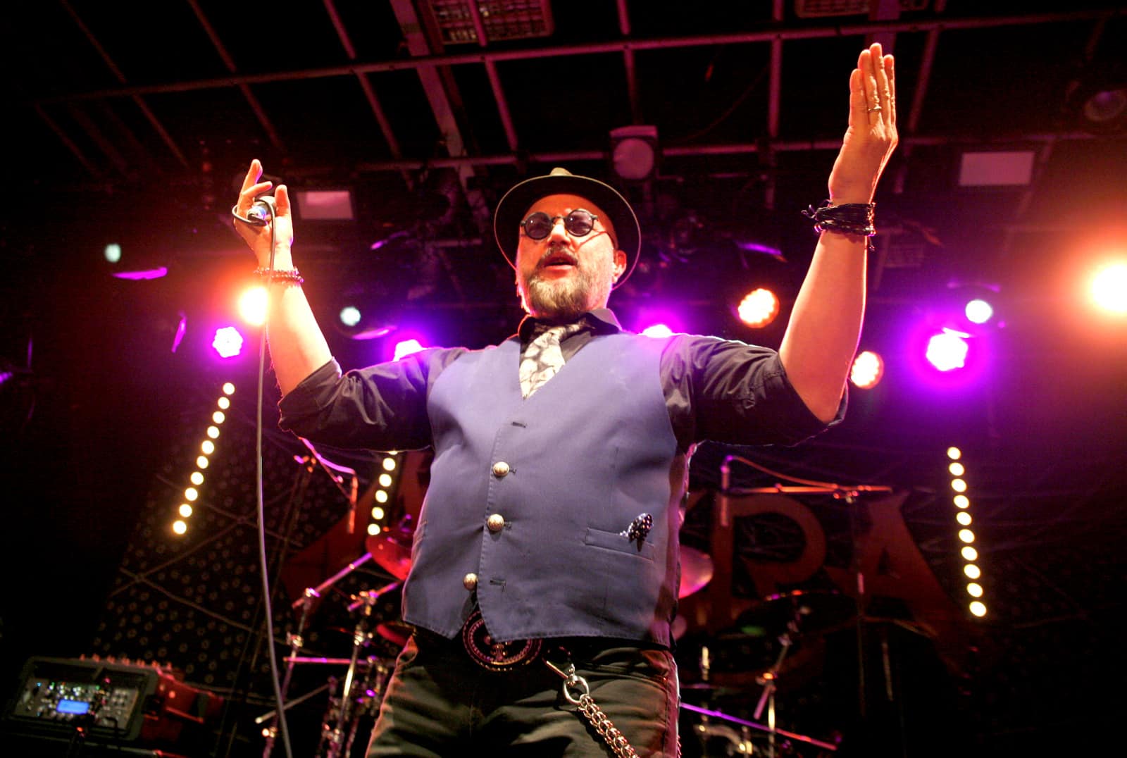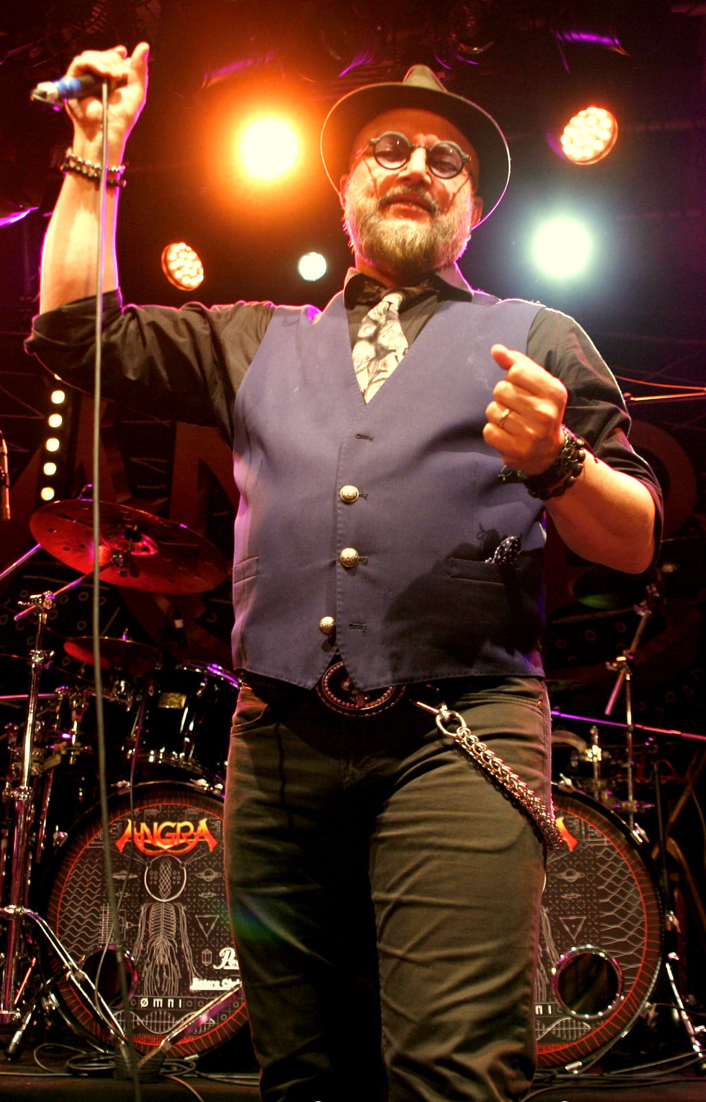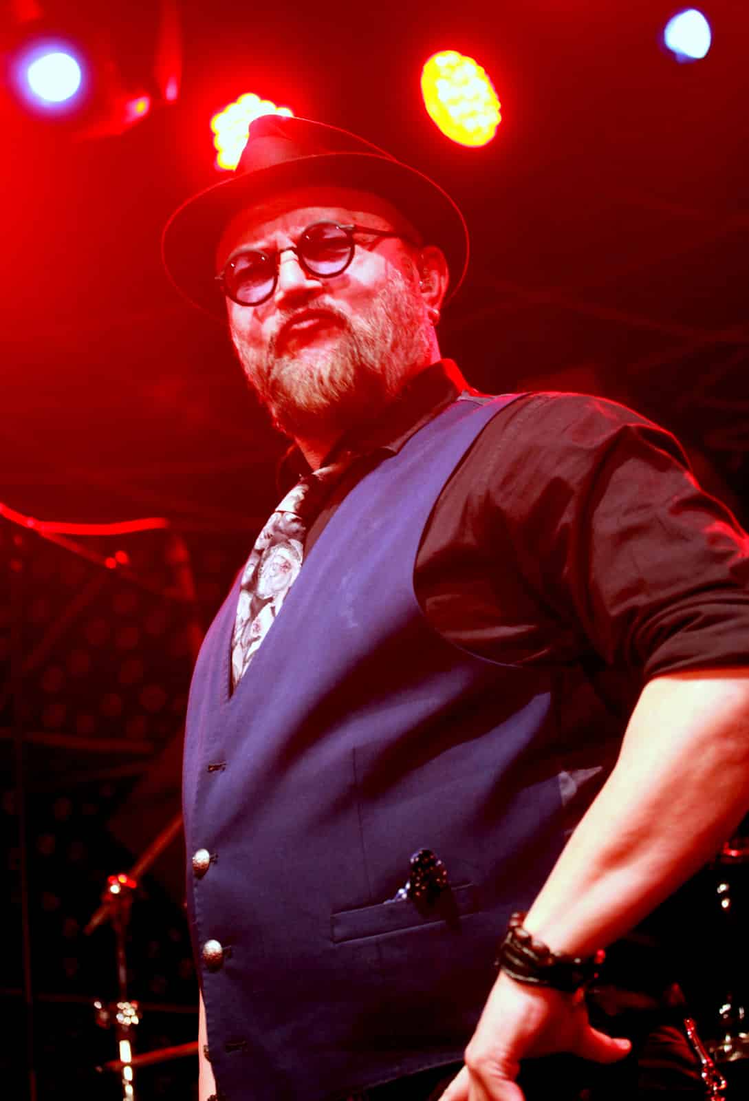 Après une intro musicale bien faite et qui accroche d’entrée le public, le chanteur entre en scène. Et là, franchement, j’ai du mal a reconnaître physiquement le Geoff que je connaissais! Il est métamorphosé! Barbu, chapeau visé sur la tête, Geoff Tate me regarde, semblant bien m’avoir reconnu, moi qui n’ait peut-être alors pas si changé que cela (pour les autres) depuis 2015…