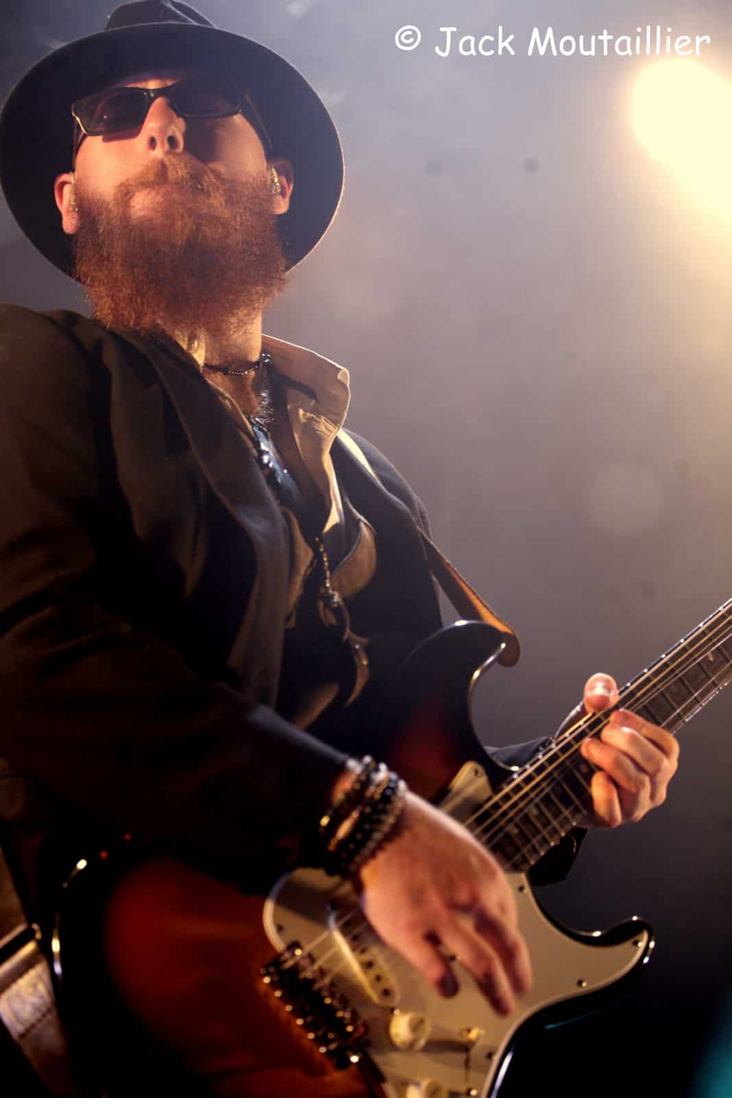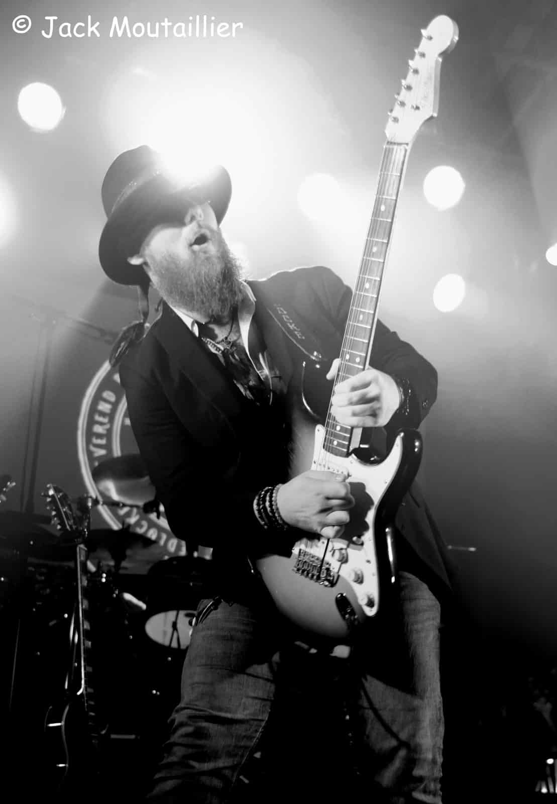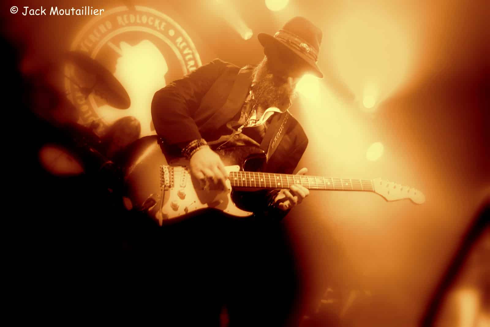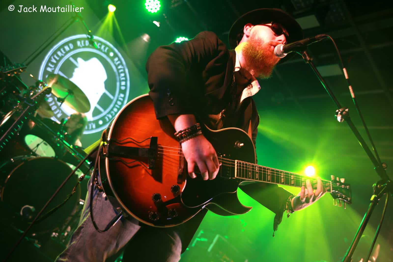 Le Reverend Redlocke ouvre la soirée. Ce trio guitare/ basse/ batterie est tout à fait efficace, le son au-devant de la scène est idéal et le style est annoncé dès les premiers accords: les mecs ont l’air de kiffer les Black Crowes et il en résulte un parfum de rock’n’roll et de hard rock sudiste bien gras, un son rappelant étrangement les années glorieuses des frères Gibbons.