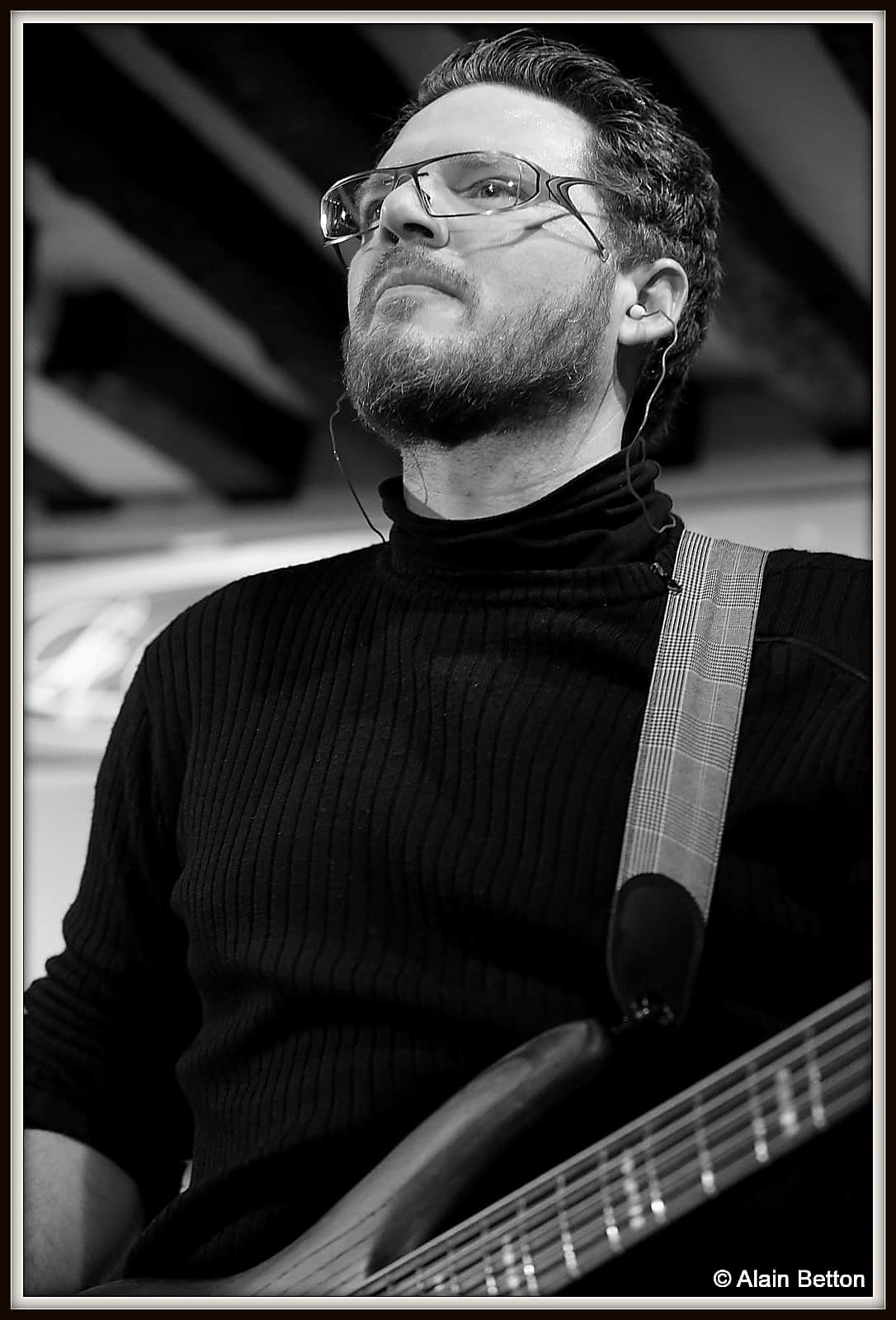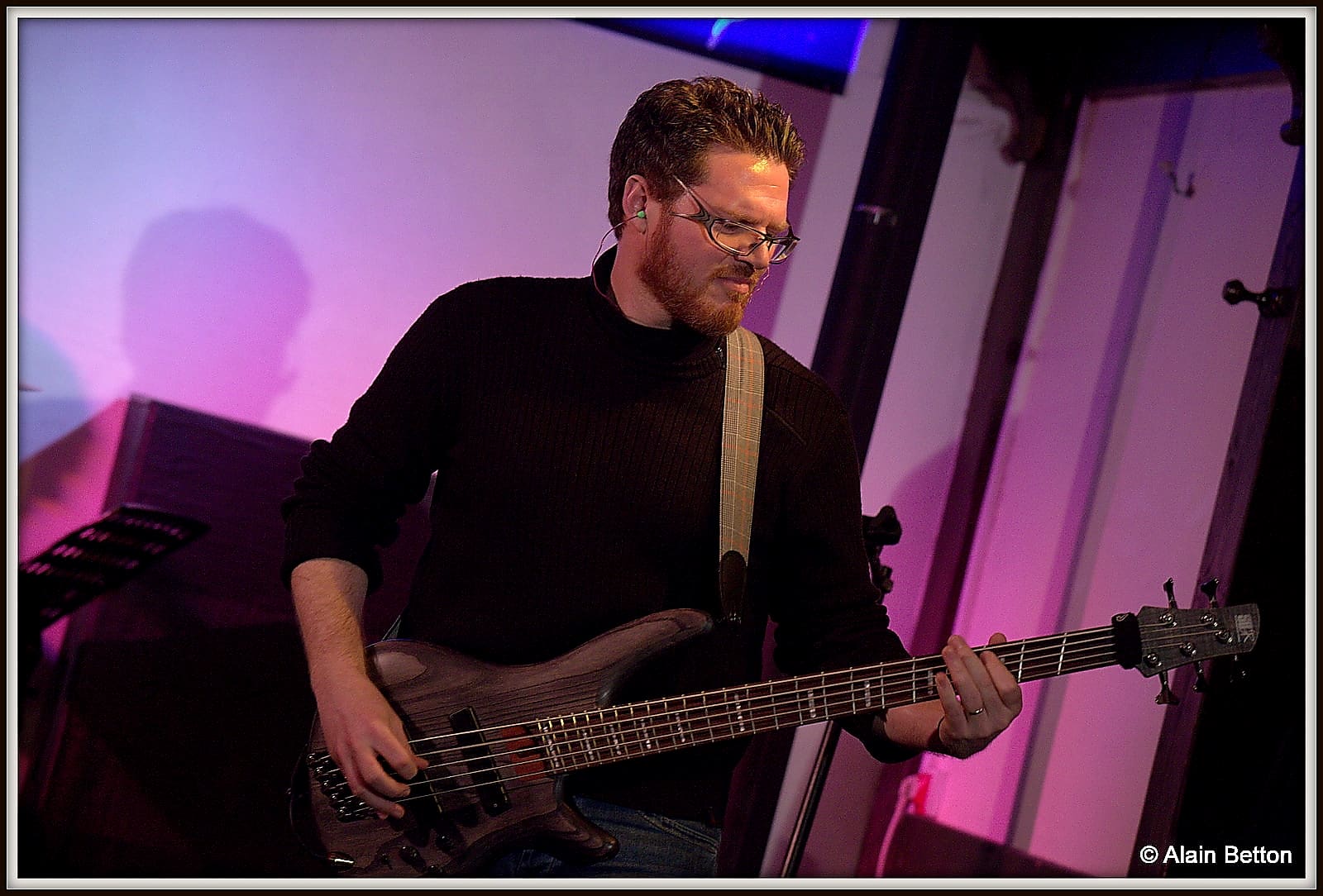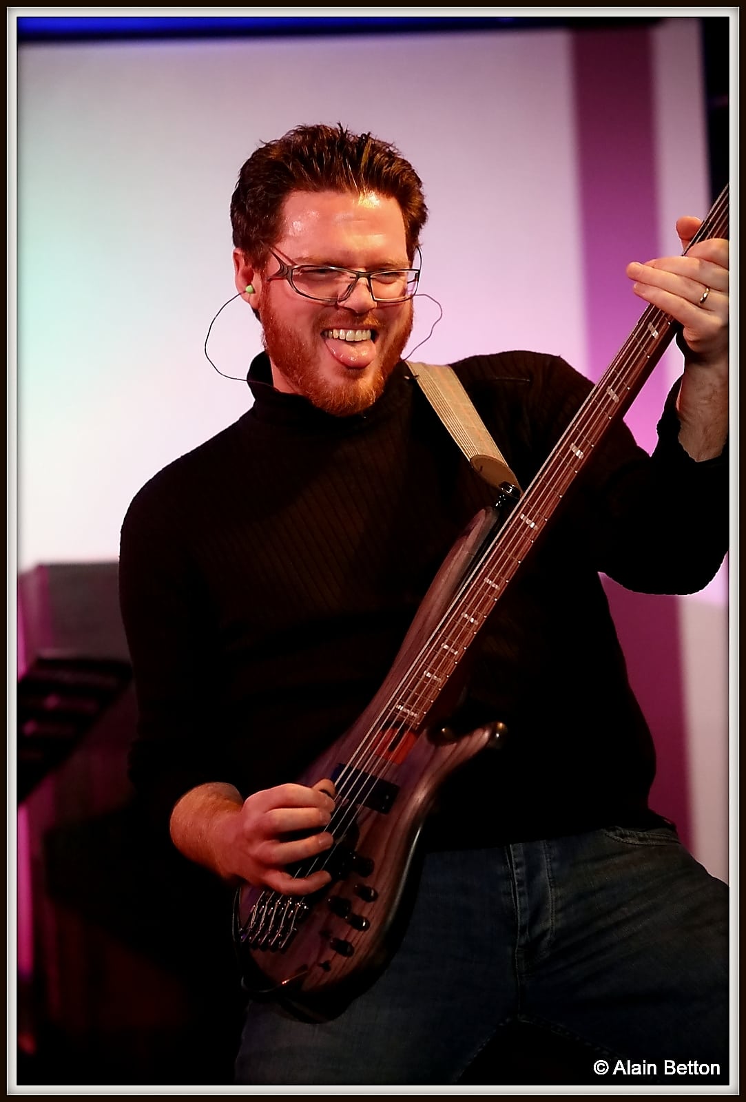 Retour sur la scène du Pitchtime, car aux côtés de Pat, la bouillante rythmique n’est pas là pour faire de la figuration, mais plutôt pour envoyer du lourd. Aurélien Ouzoulias jongle avec ses baguettes et frappe les fûts avec une impressionnante dextérité, en parfaite complicité avec Julien Lambert, bien campé sur scène, avec quelques facéties gestuelles pour être au plus proche public, avec son jeu de basse tout en rondeurs et délicatesse. Aurélien et Julien ne sont pas les musiciens attitrés de Pat O’May, mais je dirai, au vu de leur performance durant cette soirée, que le talent ne s’invente pas, il est inné!