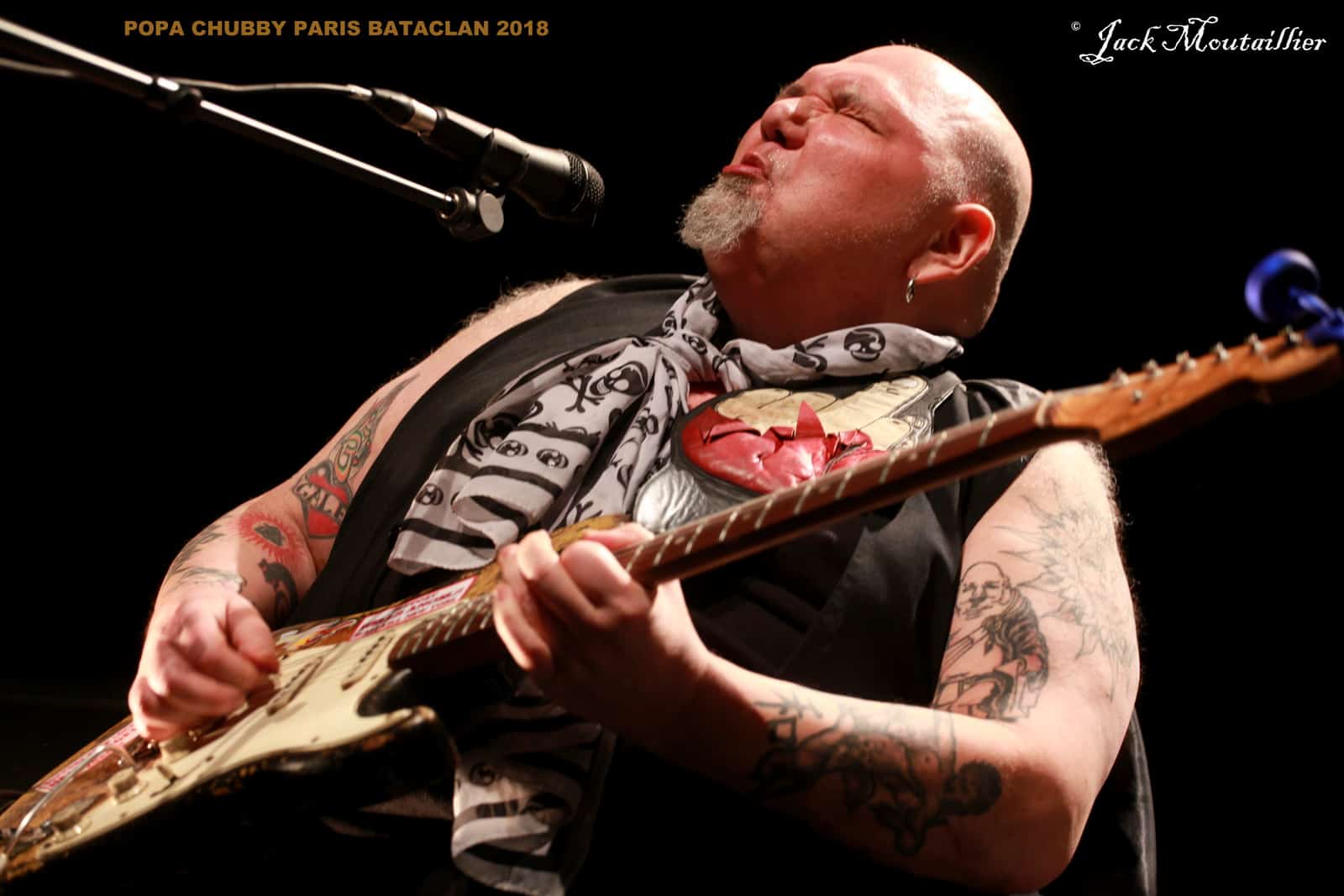 Le feeling impressionnant et inimitable de Popa Chubby a saisi la salle et les titres s’enchainent, très rock’n’roll, très blues, très blues-rock. Quand le feeling passe totalement entre Popa et le public, le bonhomme le sent et il se donne à fond, sans retenue. Et c’est le cas ce soir au Bataclan! Nous avons droit à un super concert et à plus de deux heures d’un blues-rock qui cartonne. Le Popa est au Top niveau, ce soir, et cela se sent, se voit.