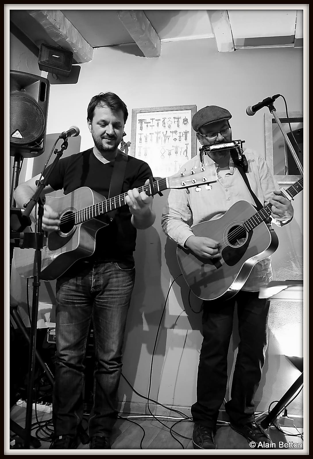 A 20 heures 30, les deux complices de Railroad Stomp prennent place dans l’endroit qui leur est imparti pour un premier set puisé dans le répertoire des pionniers du Folk, du Blues, de la Country et du Ragtime.