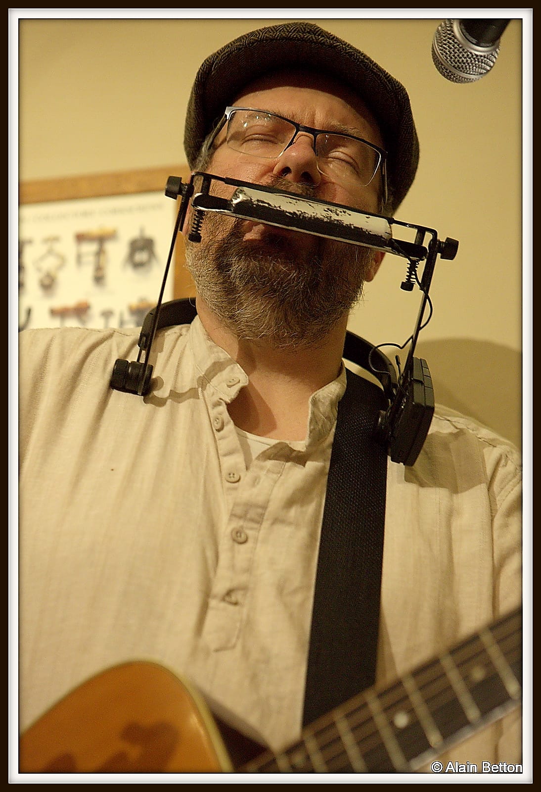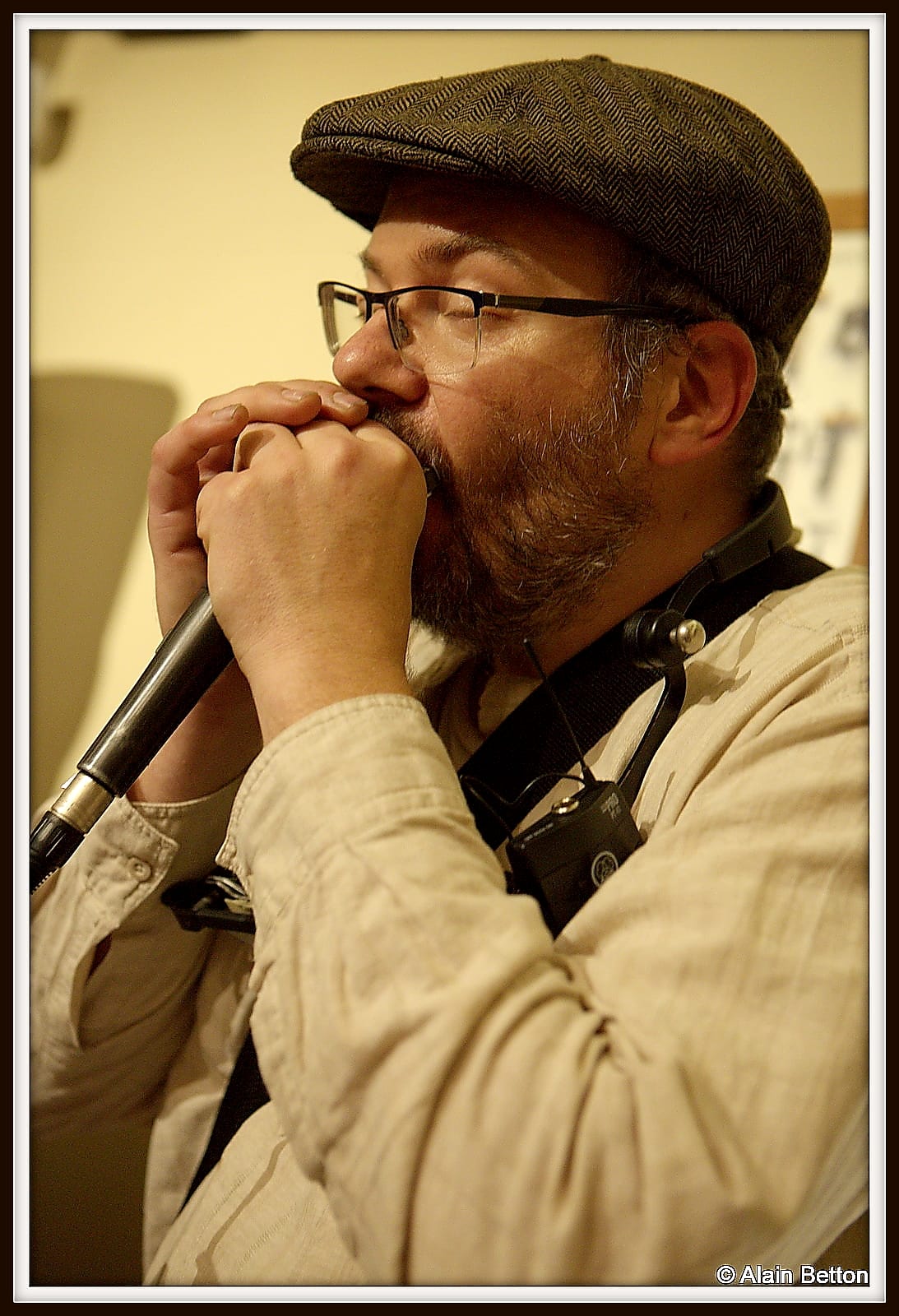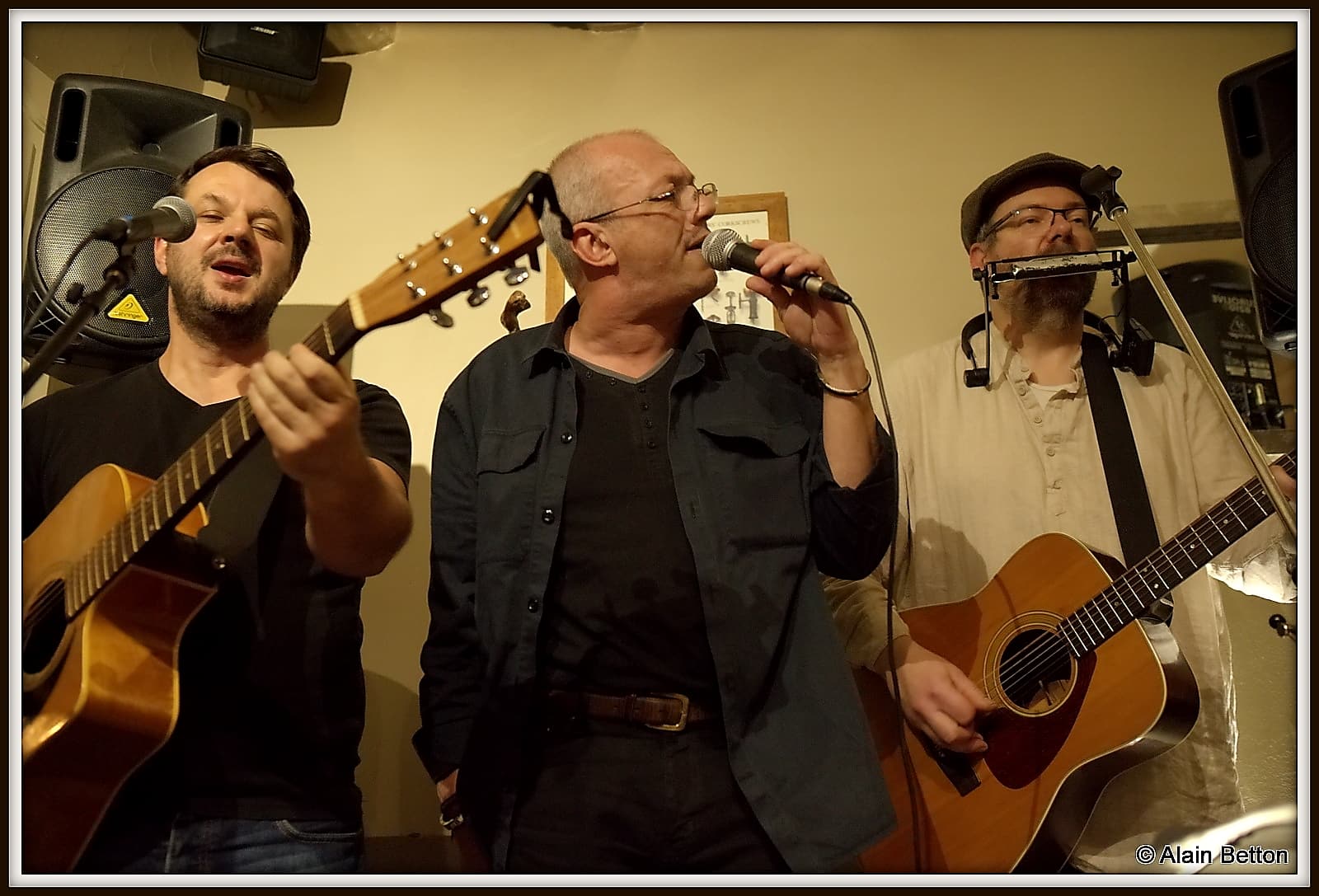 Parmi les amis présents ce coir, Fabrice Boyer, le chanteur du groupe Fuzz Blues Rock 78 rejoint le duo pour nous interpréter un vieux blues, il me semble, ‘Got my Mojo Working’ écrit par Preston Foster et repris par Muddy Waters.