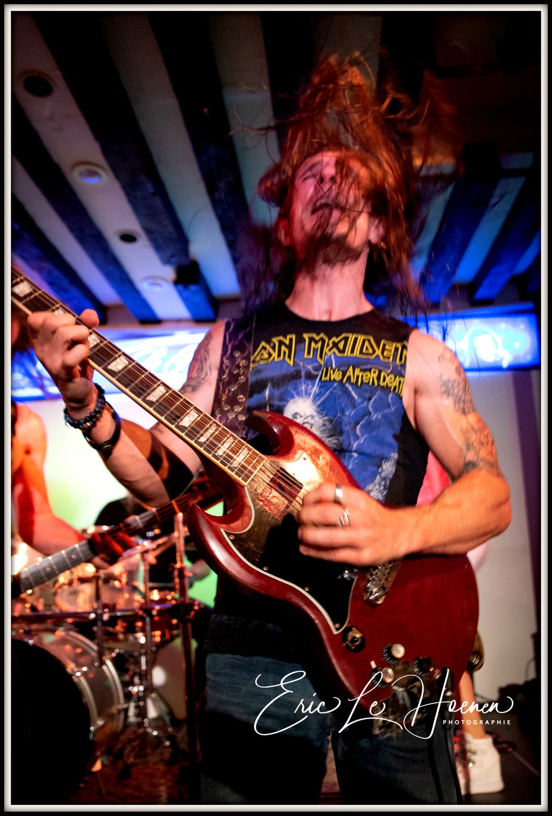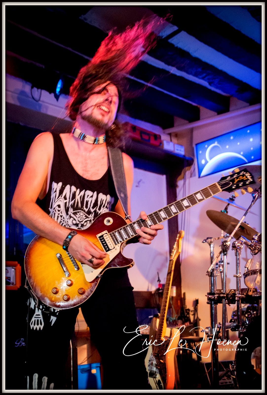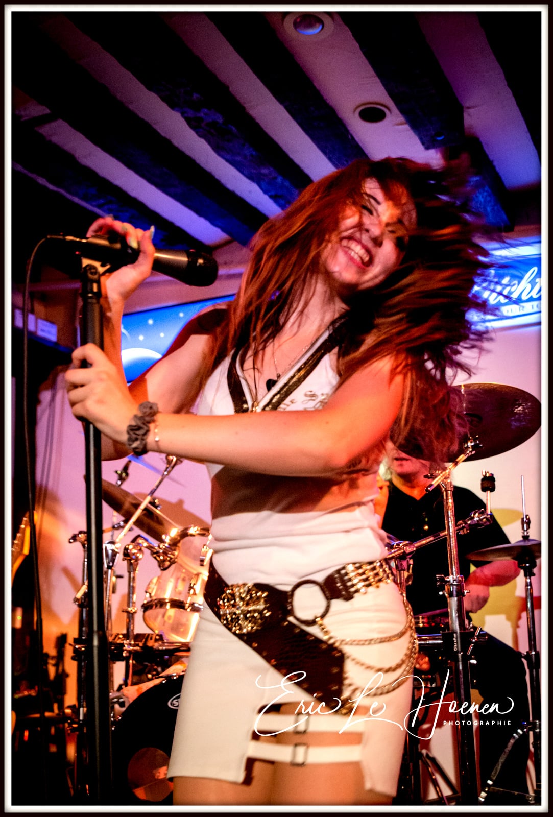 Steph, à la basse et aux chœurs, est le pilier sur lequel on s’appuie. Celui qui, avec Eric à la batterie, est la colonne vertébrale rythmique de la formation, l’indispensable ossature autour de laquelle peuvent virevolter les deux gratteux et la chanteuse. D’ailleurs, en plus des ROLLMUP’S, les RED LOTUS & THE DESPERADOS ainsi que le groupe ROCK US se sont assurés les services de ce pilier indestructible qu’est Steph et dont la présence scénique est aussi énorme que le talent du bonhomme. A moins, me suis-je dit, que Steph ne joue qu’avec des groupes dont le chant est assuré par des femmes… Est-ce un signe…? Car comme le dit Frankie, notre rédacteur en chef, “il n’y a pas de hasard”.