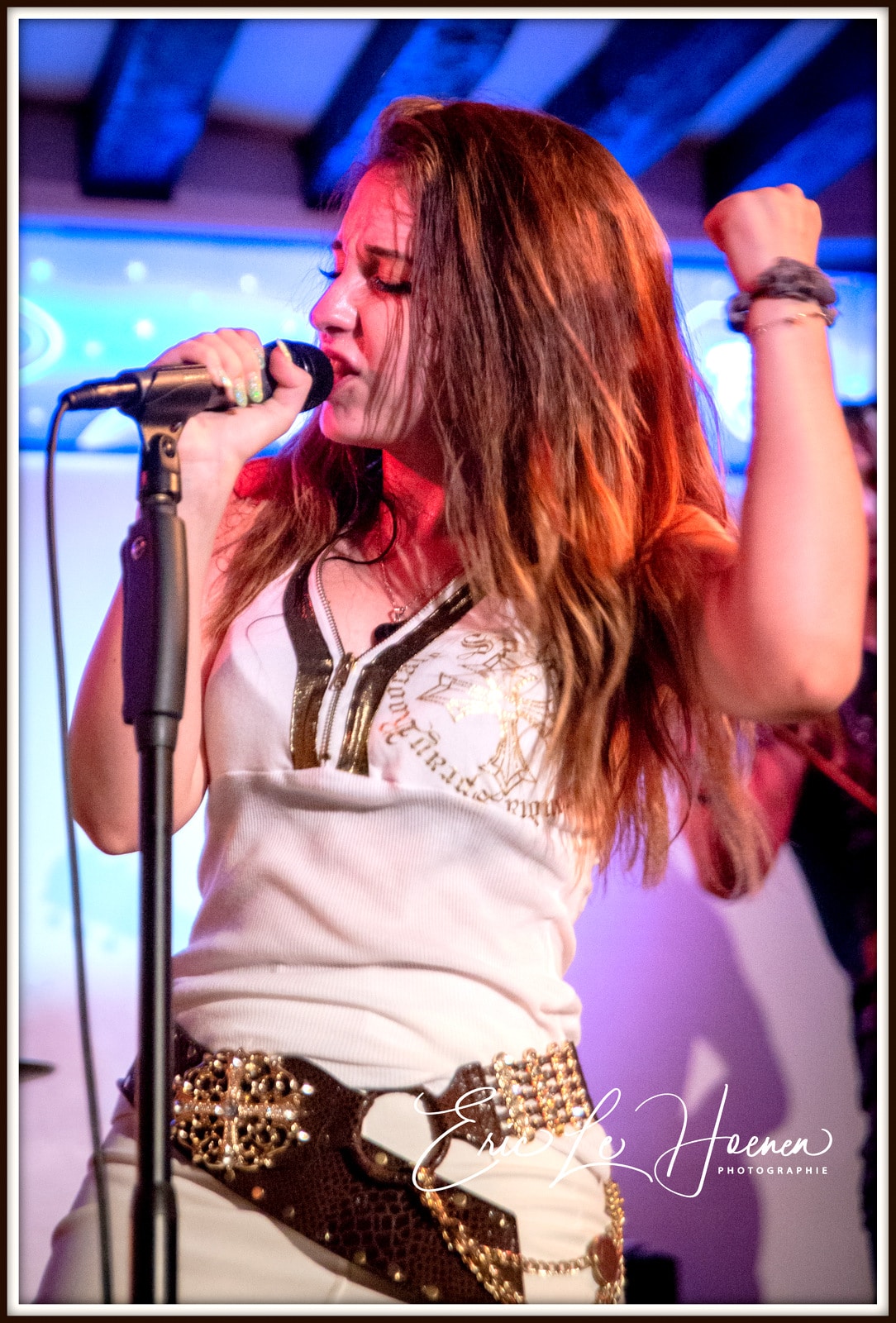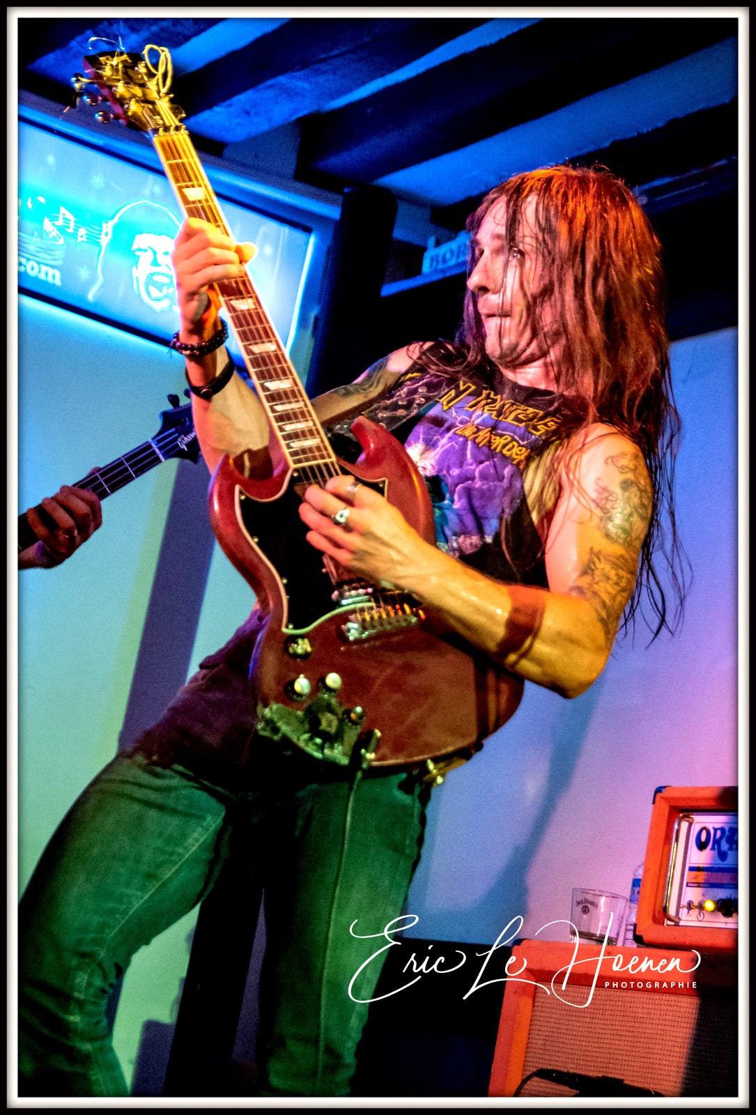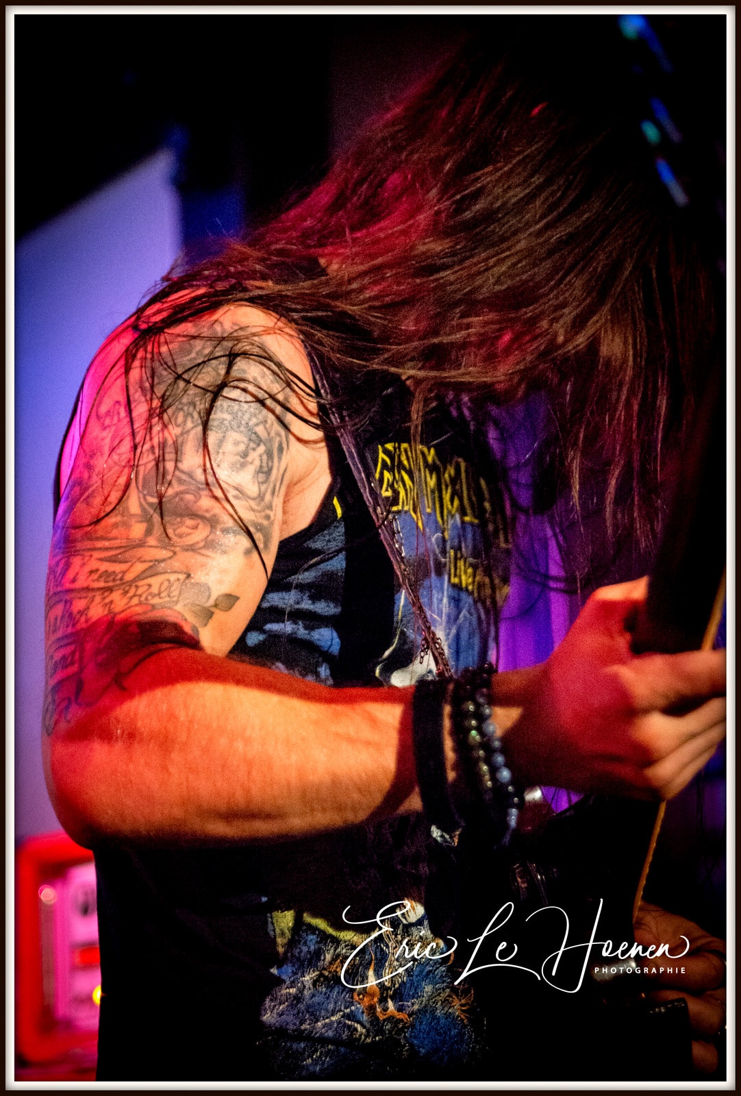 Steph, à la basse et aux chœurs, est le pilier sur lequel on s’appuie. Celui qui, avec Eric à la batterie, est la colonne vertébrale rythmique de la formation, l’indispensable ossature autour de laquelle peuvent virevolter les deux gratteux et la chanteuse. D’ailleurs, en plus des ROLLMUP’S, les RED LOTUS & THE DESPERADOS ainsi que le groupe ROCK US se sont assurés les services de ce pilier indestructible qu’est Steph et dont la présence scénique est aussi énorme que le talent du bonhomme. A moins, me suis-je dit, que Steph ne joue qu’avec des groupes dont le chant est assuré par des femmes… Est-ce un signe…? Car comme le dit Frankie, notre rédacteur en chef, “il n’y a pas de hasard”.