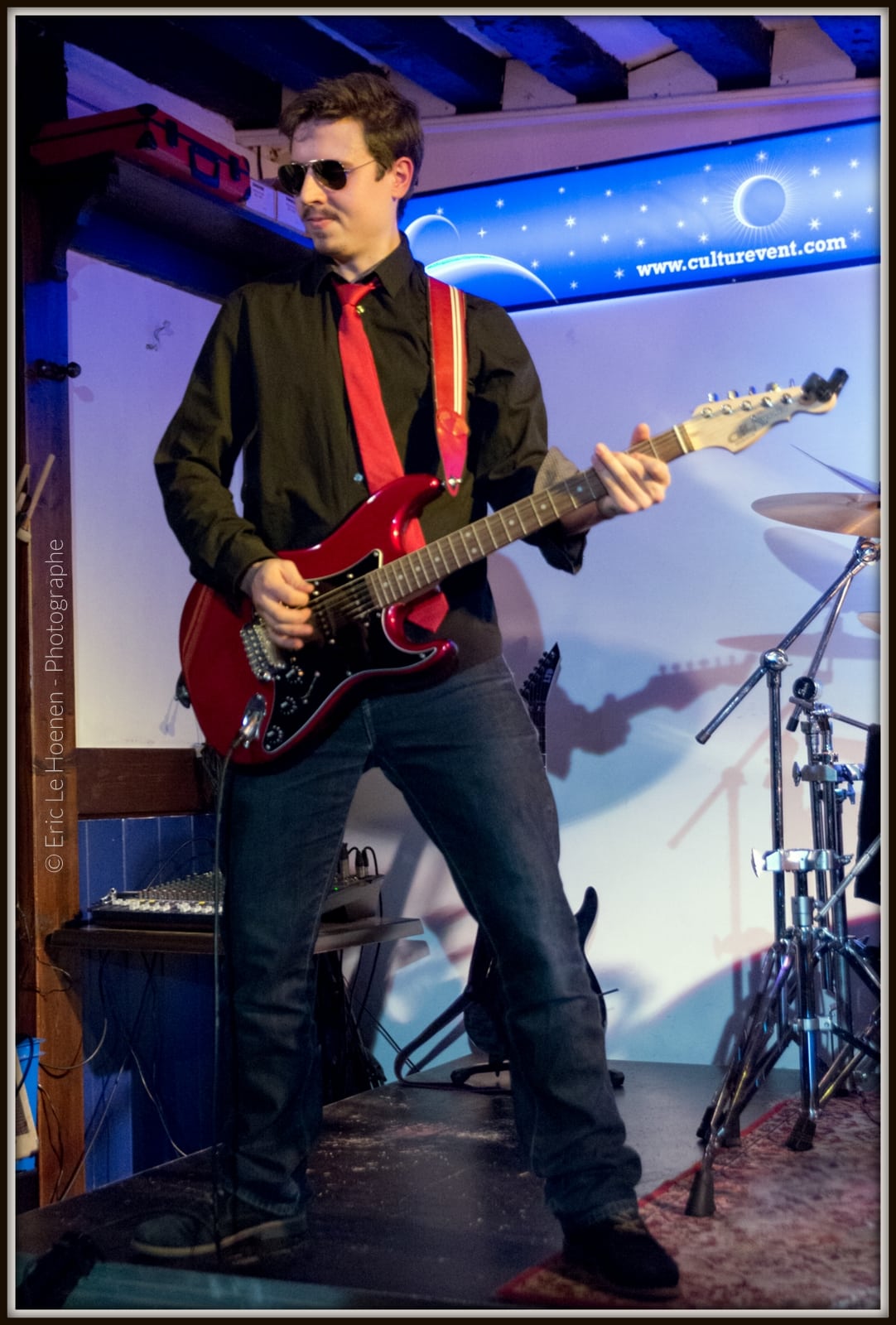 Ses influences? Le Rock’n’Roll et le Blues, John Lennon et Keith Richards. Un Beatles et un Stones, le meilleur des choix, sans aucun doute. The Doc, tiré à quatre épingles devant le public du Pitchtime qui a fait le déplacement, nous présente les titres du groupe avec classe et conviction. Le bonhomme ne fait qu’un avec sa guitare: il l’accompagne, elle le séduit et il la charme, en magicien de la six cordes qu’il sera tout au long des deux sets.