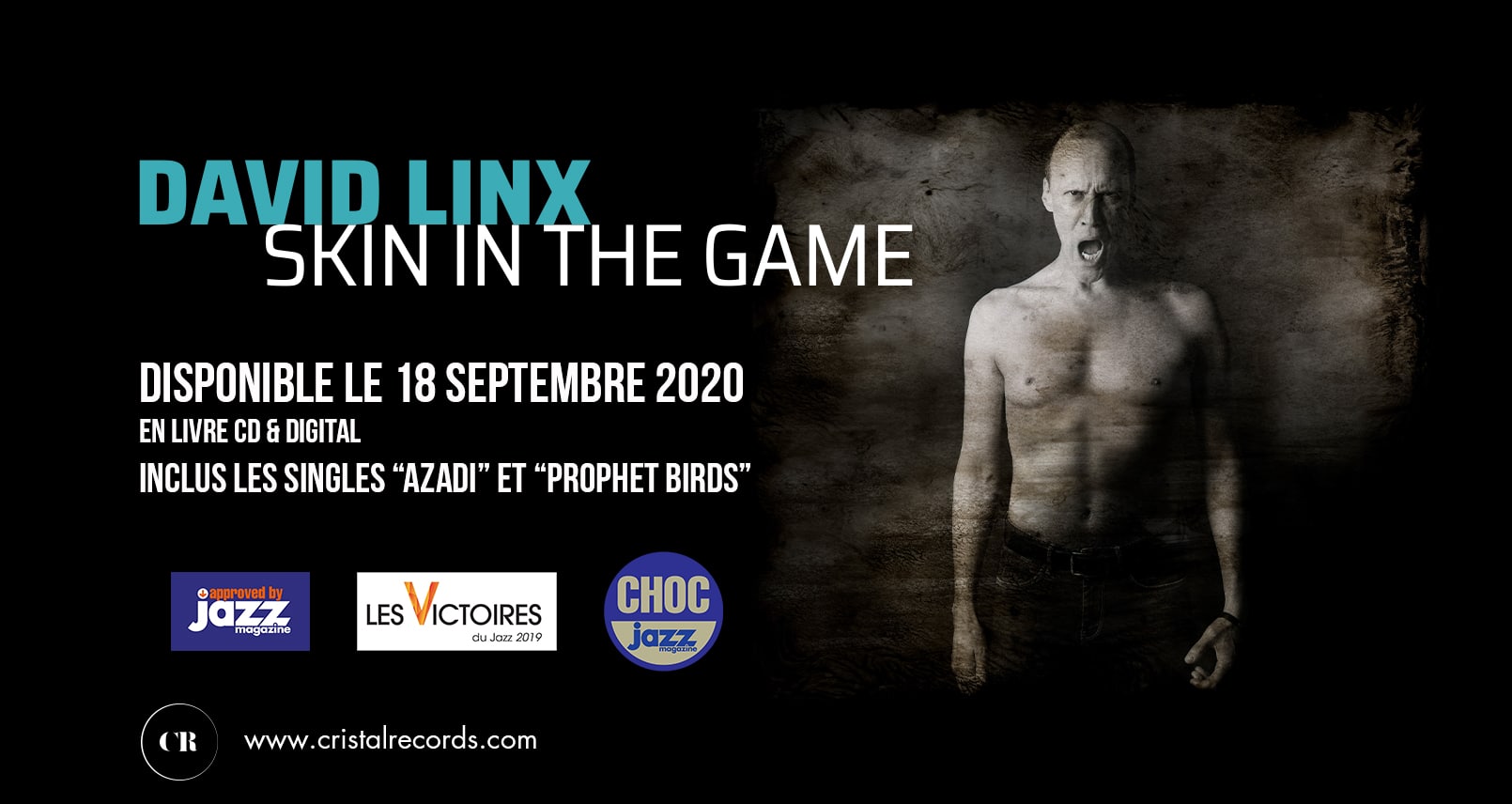 PARIS-MOVE, September 10th 2020 – David Linx news: Nouvel album Skin in The Game – Sortie le 18 Septembre 2020 chez Cristal Records. En concert le 12 octobre au New Morning (à confirmer, bien entendu, selon les possibles futures mesures sanitaires éventuelles).
