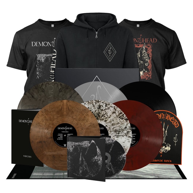 Their fourth full-length – Viscera – is a new beginning for Demon Head. Recorded during the first months of 2020 between the legendary Sweet Silence Studios by Flemming Rasmussen (Metallica, Morbid Angel, Rainbow) and a remote country house in Sweden, the album was mixed by Martin ‘Konie’ Ehrencrona (In Solitude, Tribulation, Nifelheim). The production shows the impeccable qualities of joined forces, where old techniques meet new aesthetics, and major label possibilities meet underground, uncompromising DIY dedication. The resulting 10 songs showcase acoustic instruments, flourishing mellotron strings, brass instruments, tape manipulation and church organ – displayed in equal measure to the sound of the crushing drums of J.W, cryptic guitars of brothers B.G.N and T.G.N, pounding bass lines of M.S.F, and the vocals of M.F.L combined with the eerily captivating falsetto and baryton of B.G.N.