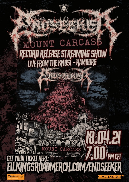 After unleashing Mount Carcass, Endseeker will host a record release livestream show on Sunday, April 18th at 10AM PST//1PM EST//7PM CET. Streamed live from Knust, Hamburg, reserve your ticket now HERE