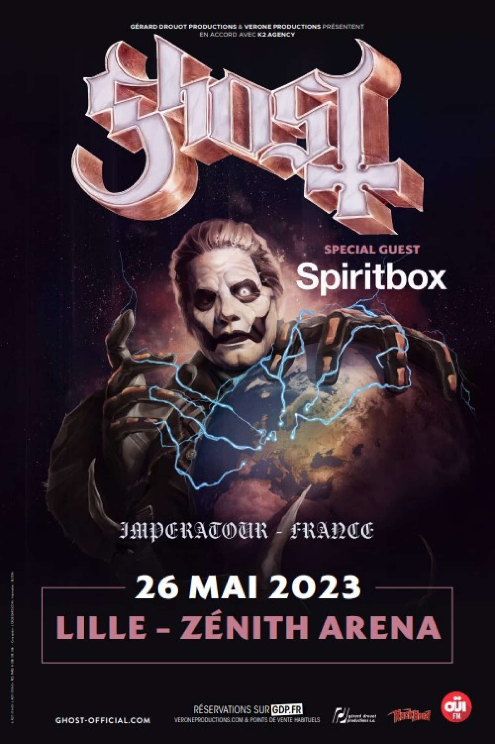 PARIS-MOVE, May 18th 2023 – Alors que son EP Phantomime est sorti le 18 mai et que son irrésistible reprise de Genesis “Jesus He Knows Me” squatte les ondes radio, GHOST annonce que deux de ses huit concerts français de mai affichent complet! Dans les autres villes, les légions de fans se mobilisent aussi pour faire de cette tournée un véritable succès. Papa Emeritus IV et ses Nameless Ghouls sont parés pour leur offrir un spectacle encore plus grandiose que celui donné à l’Accor Arena de Paris en avril 2022.