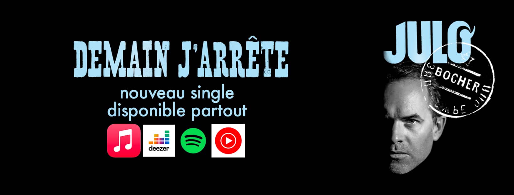 En 2022, enfin le déclic! Un divorce, un covid, et un chagrin d’amour plus tard… il n’a tout simplement plus le choix. Après avoir dit et chanté les mots des autres, sa musique le rattrape. Julo reprend la parole et le micro et nous fait enfin partager sa vision.