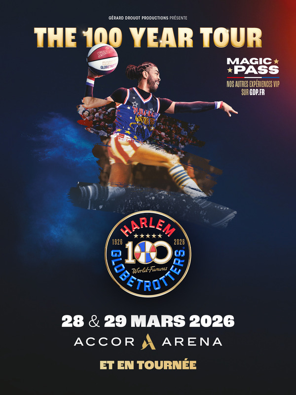 Les Harlem Globetrotters reprennent la route pour célébrer leurs 100 ans. Ils seront sur le parquet de l’Accor Arena les 28 et 29 mars 2026 à Paris et en tournée française. 100 ans d’émotions, de rires et de joie ! Après avoir foulé les parquets des 5 continents, les Harlem Globetrotters reprennent la route pour célébrer leurs 100 ans!