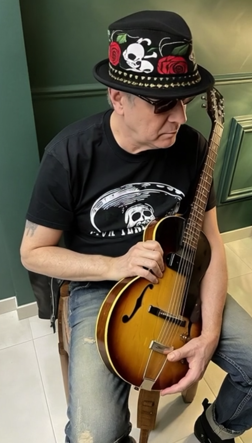 Joe Marion: J’écoute pratiquement que du rock’n’roll, du rockabilly et du blues, et quelques trucs pop. Que des mecs morts!! Mais je ne suis pas collé à mes baffles 24h/24. Quand tu sors de répétition ou de studio, t’as les oreilles fatiguées, alors tu les reposes. J’ai la chance de ne pas avoir d’appareil auditif, alors j’entretiens mes esgourdes!!