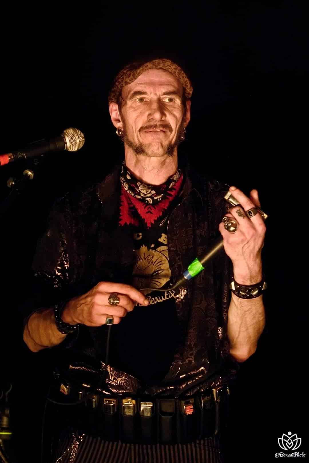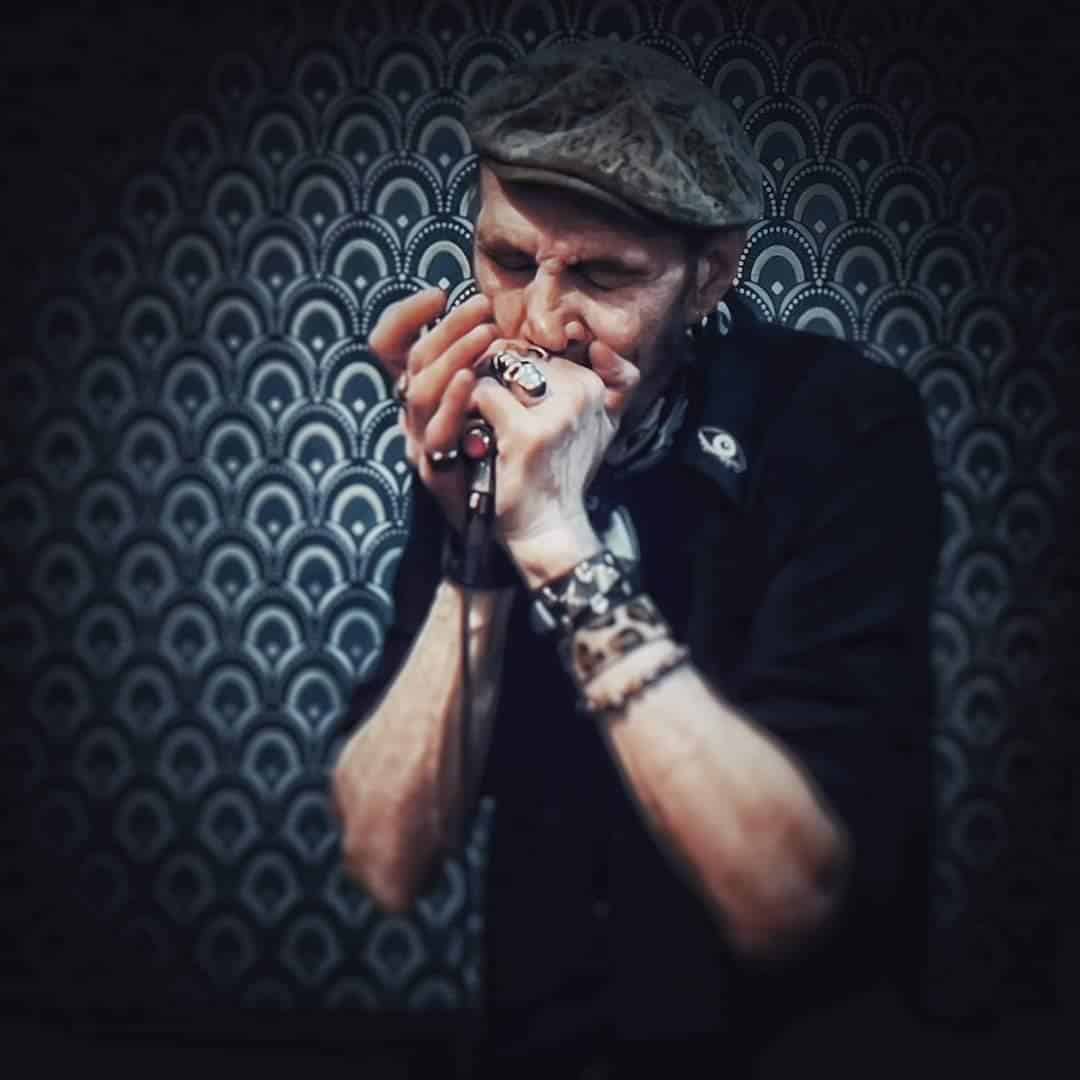 Kik s’avère être une véritable légende vivante au sein du microcosme du rock montreuillois, une sorte de monstre sacré, de dinosaure en voie d’extinction, une espèce protégée dont la statue de cire au musée Grévin n’est pourtant pas d’actualité, qui souffle et aspire dans son harmonica diatonique, comme dans un état d’urgence, comme si sa vie en dépendait, en faisant vibrer les lamelles de son instrument avec une aisance inouïe et une conviction déconcertante, comme si c’était la dernière fois, comme un ultime plaisir volubile. Bref, Kik ne joue pas du rock’n’roll, il est tout bonnement le rock’n’roll. Incontestablement, Kik apporte une couleur bluesy à la musique dénuée de carcan qui sent la paille de Johnny Montreuil. Bien que son jeu d’harmonica soit très électrifié et saturé à souhait, Kik suscite et distille un son très roots, très down-home, plus rural qu’urbain, comme si le haut-Montreuil se conjuguait avec les champs de coton aux confins du Mississippi et que la Croix de Chavaux était jonchée de juke-joints et autres Barrels House, entre volutes de fumée, vapeurs d’alcool, whiskey frelaté dans une époque prohibitive, odeurs de soufre, douze mesures et trois accords dont on ne ressort jamais indemne. D’après de nombreux observateurs, Kik s’impose sans en avoir l’air et sans avoir le boulard ni les dents qui rayent le parquet, comme l’un des meilleurs harmonicistes hexagonaux, comme une sorte de Little Walter les deux doigts dans la prise, ou de Sonny Boy Williamson II sous amphétamines, entre tachycardie sous-jacente et utopie collectives. Loin des méthodes élaborées et autres théories dûment réfléchies, il se situe plutôt dans l’héritage d’un Benoît Blue Boy que d’un Jean-Jacques Milteau, en véritable sculpteur de courants d’airs et souffleur de rêves chimériques. Un harmoniciste entre blues et rock’n’roll, qui a également traversé l’éphémère mais sulfureuse période du punk parisien en qualité de membre éminent, habité et possédé sur scène telle une sorte de chat sauvage sans le twist à Saint-Tropez, au jeu spontané, féroce, bestial et instinctif. Son jeu est charnel et remue les tripes au plus profond en se mettant la rate au court-bouillon, comme dans le Booster Speed de la fête à Neu-Neu. Avec Kik, on oublie rapidement son arthrose, ses bas de contention et ses rotules en titane. Johnny Montreuil et Kik, depuis Narvalo City Rockerz de 2015 et même avant, sont devenus indissociables et inséparables, en parfaite symbiose paroxysmique à lézarder les murs de Jéricho, à changer l’eau en vin et à mettre le feu. Une osmose surréaliste telle une esquisse de Dali. Kik étant l’alter ego et le grand frangin de Johnny et Johnny étant l’alpha et l’oméga, le guide spirituel et le booster de Kik. Imaginez un peu Tintin sans Milou, Bonnie sans Clyde, Laurel sans Hardy, Brownie McGhee sans Sonny Terry, Dupond sans Dupont, Peter Pan sans la fée Clochette, Pierrot sans Colombine, Thelma sans Louise, Roméo sans Juliette, Mick Jagger sans Keith Richards… Supputations inimaginables! Vide intersidéral! Spleen incommensurable!