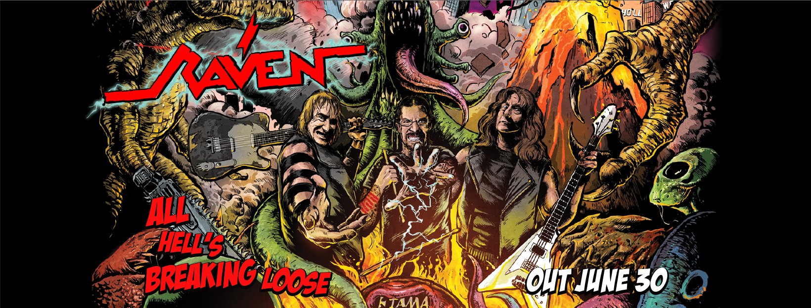 PARIS-MOVE, April 5th 2023 – Raven, pilier incontestable de la fameuse New Wave Of British Heavy Metal est vraiment un groupe increvable! Le 30 juin prochain, le trio de Newcastle va dégoupiller son 15ème album studio, synonyme d’une de ces belles pagailles électriques dont il a le secret. Intitulé “All Hell’s Breaking Loose”, ce disque va déchaîner les éléments métalliques!