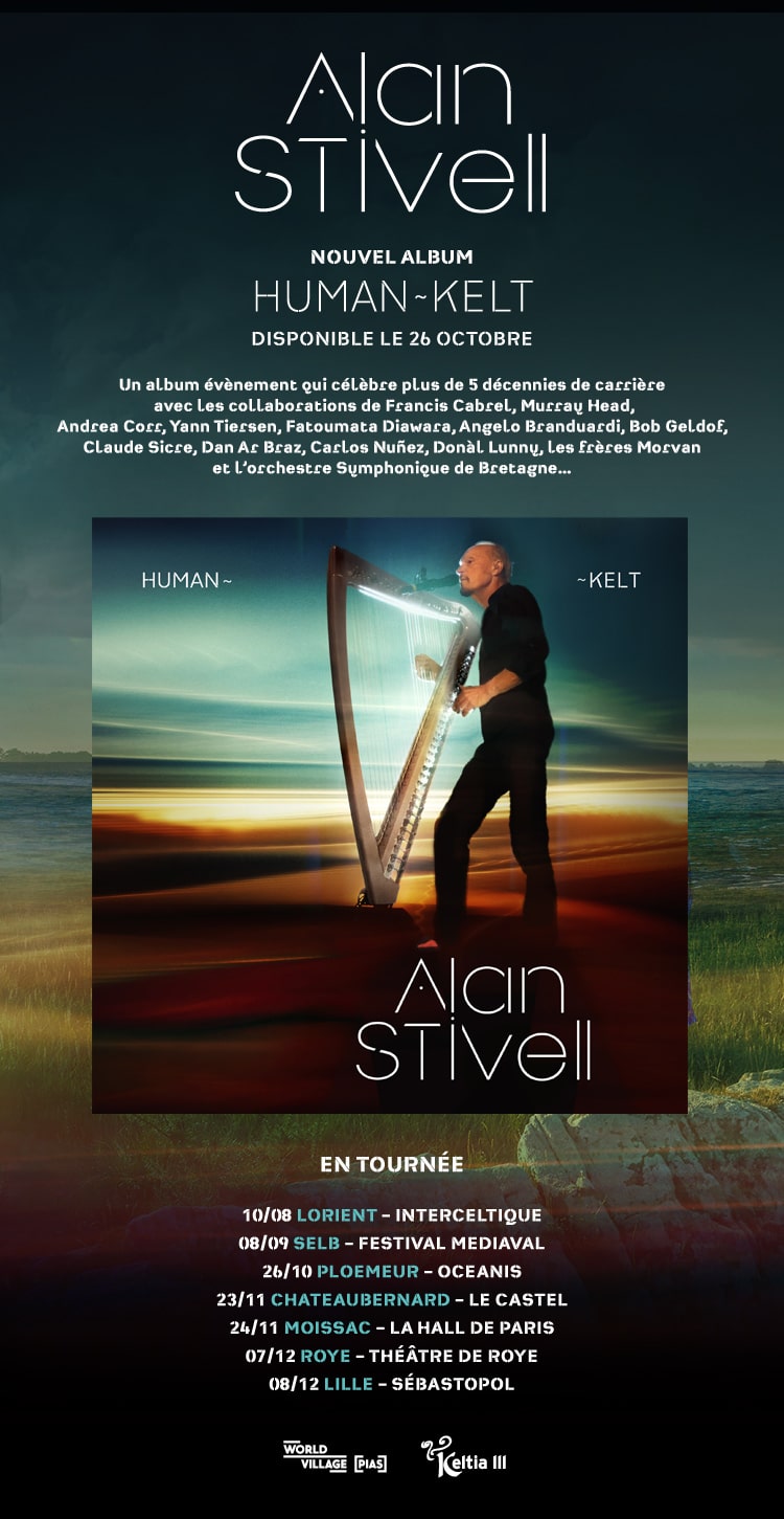 Il faudra patienter jusqu’au 26 octobre pour vous le procurer sur le label World Village (distribution Pias), mais en attendant, ne manquez surtout pas de retrouver Alan Stivell sur sa tournée “Human-Kelt”.