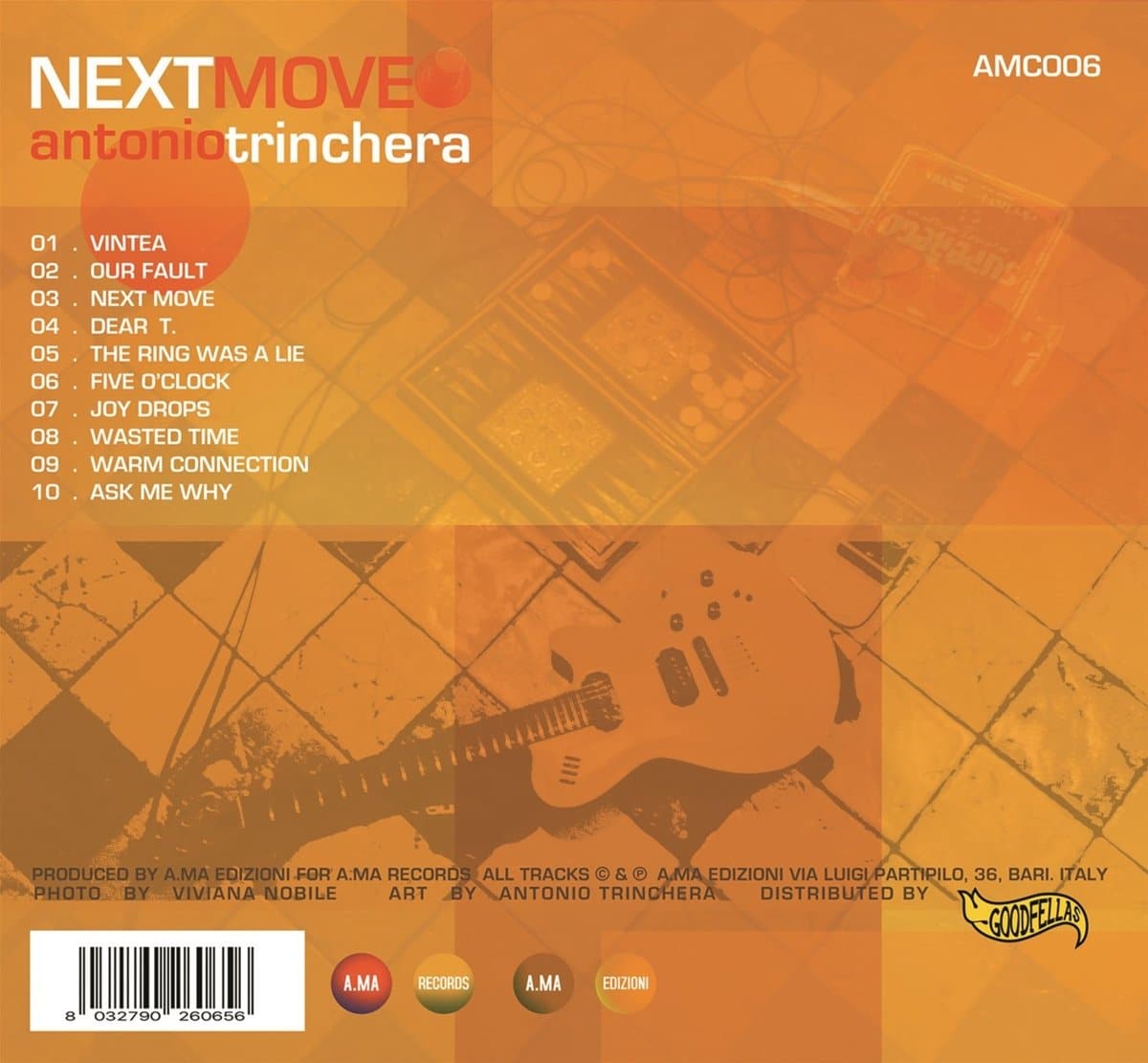 Nos amis de A.MA Records sortent un EP de trois remix du titre “Joy Drops” du guitariste Antonio Trinchera, un titre qui est tiré de l’excellent album Next Move paru en 2016 et qui est toujours disponible ICI