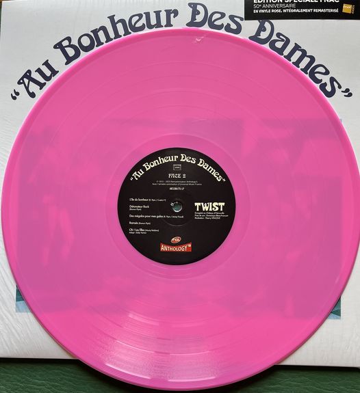 Assister à l’un de leurs concerts, c’était comme aller au théâtre, comme assister à une comédie caricaturale du style bouffons de Louis XIII, ou l’opéra bouffe avec les œuvres de Molière ou John Gay. En 73, le line-up du groupe Au Bonheur Des Dames, la crème de la crème, le nec plus ultra, la dream team, se compose de: Chanteurs: Vincent Lamy, plus connu sous le sobriquet de Eddick Ritchell, un génial condensé entre Eddy Mitchell et Dick Rivers. Son groupe aurait même pu s’appeler Les Chaussettes Sauvages ou Les Chats Noirs! L’âme damnée de la bande, l’imprésario véreux… Plus sérieusement, la figure de proue du groupe, le maître à penser, le chef étoilé. Merci à Vincent Lamy d’avoir présenté de 82 à 83 l’émission hebdomadaire rock L’Echo des Bananes sur FR3. Pour moi, c’était le rendez-vous incontournable du dimanche soir, bien plus que l’insupportable et ennuyeuse grand-messe du samedi soir de Maritie et Gilbert Carpentier, une sorte de mafia dans le système nauséabond du showbiz, qui promouvait toujours les mêmes artistes qui, pour certains, semblaient avoir aux Buttes-Chaumont leur rond de serviette, leurs charentaises, leur brosse à dents et leur tube d’Ultra Brite et leur lit Picot. Sharon Glory et Jimmy Freud. Guitaristes: l’excellentissime guitariste/ auteur/ compositeur monsieur Ramon Pipin (Alain Ranval), le ciment du gang, qui bien qu’Au Bonheur Des Dames ne soit pas l’armée mexicaine où règne la chienlit la plus indescriptible et qu’aucun pacte faustien n’ait été signé par le sang des protagonistes, après quelques divergences, s’en ira former le groupe Odeurs, avant de revenir au bercail. Chick Béru, Shitty Télaouine (basse), et le regretté Jacques Pradel (Rita Brantalou) basse et guitare, hélas décédé en 2021. Attention, Jacques Pradel, pas le mec de l’émission Perdu de Vue, avec ses yeux de cocker abandonné par son paltoquet de maître sur la route du Lavandou au mois d’août. Cuivres: le regretté Gépetto Ben Glabros (Pierre Rigaud), décédé en 2017 et Ulric Danone. Batterie: le regretté Hubert de la Motte Fifrée, décédé en 2003. Décidément, si ça continue, ma chronique va hélas ressembler à un registre des avis de décès non-exhaustif, délivrée par un employé des pompes funèbres générales. Qu’ils reposent en paix et cette réédition en vinyle rose de Twist est aussi en leur hommage. Sans oublier Wolfgang Lion au piano et les Glamour Sisters aux chœurs. Voilà, j’espère n’avoir oublié personne…