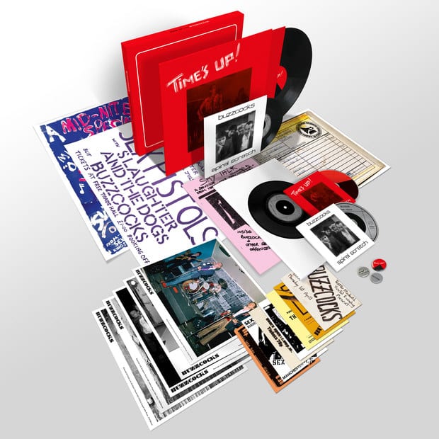 Le coffret BUZZCOCKS (mk.1) Box contient un vinyle 7’’ et un CD de Spiral Scratch, le vinyle et le CD de Time’s Up et des codes de téléchargement pour les audios et les vidéos, des cartes réimprimées de l’époque, des photographies au format 10’’x 8’’, le flyer et le poster de leurs concerts en 1976, des badges, un livret sur Spiral Scratch et un numéro imaginé pour l’occasion de ‘Shy Talk’, un fanzine de Manchester, avec des articles des journalistes de l’époque!