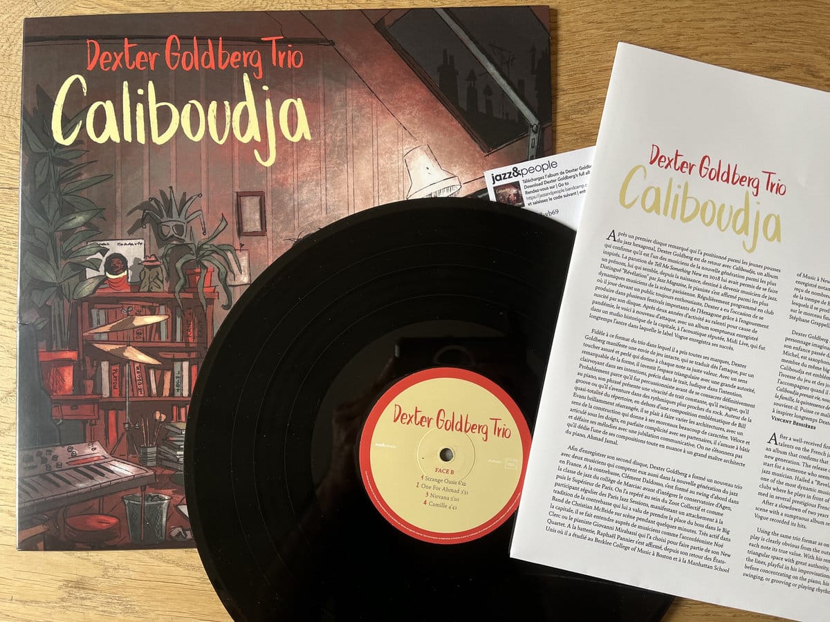 Dexter Goldberg a composé 7 des 8 morceaux de ce second opus et a il arrangé ” à sa sauce” une composition du grand Bill Evans, “Time Remembered”. Il avait dédié l’une de ses compositions à Ahmad Jamal à qui il avait demandé s’il voulait bien préfacer le nouvel opus. Le maître n’a eu que le temps d’envoyer quelques mots d’encouragement, “Loved the concept”, sans malheureusement pouvoir donner de suite, Ahmad Jamal nous ayant quitté cette année (1930 – 2023). Pour former ce nouveau trio, Dexter Goldberg a choisi deux musiciens particulièrement doués. Le premier a joué au sein de Zoot Collectif, il participe le plus souvent possible aux Paris Jazz Sessions et joue régulièrement avec l’accordéoniste Noé Clerc ou le pianiste Giovanni Mirabassi. Le second a enregistré avec Aaron Goldberg et Miguel Zenon et se produit avec Biréli Lagrène, Thomas Enhco ou Baptiste Trotignon. Le titre de l’opus, Caliboudja, reprend en fait le nom d’un personnage imaginaire inventé avec sa soeur durant une enfance passée dans un environnement baigné de musique, avec un père saxophoniste et une mère pianiste. Caliboudja est emblématique, aux yeux du musicien, de la fertilité créatrice de l’enfance, de l’ivresse du jeu et des joies de l’invention. Sentiments qui continuent de l’accompagner quand il est sur scène, devant son public. Un superbe album proposé par un pianiste dont le talent et le charisme en feront un des grands noms du jazz des années à venir. Comme le lui avait écrit Ahmad Jamal, “Loved the concept”. Un album “coup de coeur” qui a basculé dans la pile des “indispensables”.