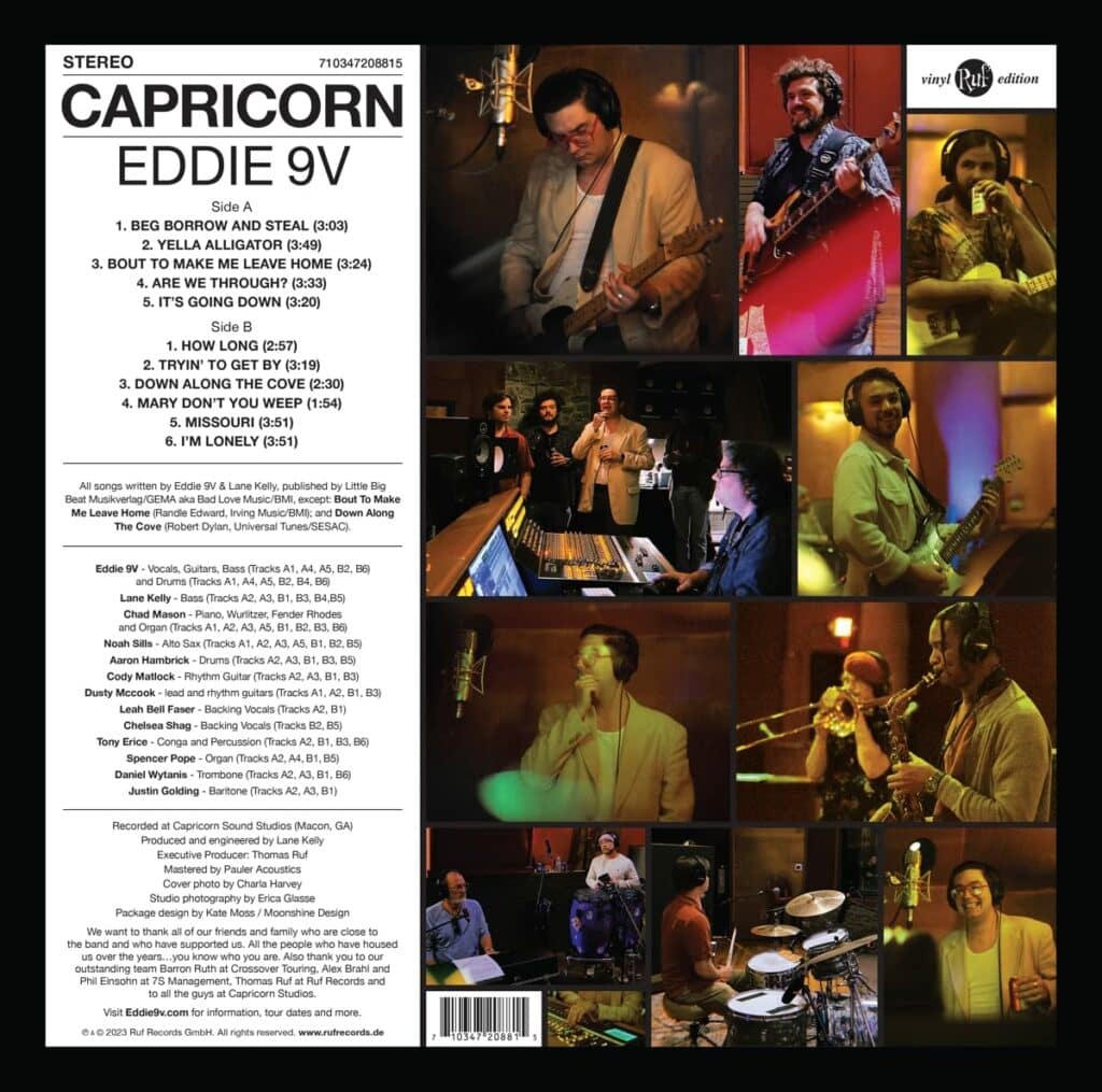 Pour son 27ème anniversaire, Brooks Mason (alias Eddie 9V) a gagné en raison sociale (manière de paraphraser notre rédac’ chef Frankie). Natif de Georgie, ce jeune homme fantasme depuis son plus jeune âge sur les studios Capricorn basés à Macon (ainsi que sur ceux de Muscle Shoals), dont le son chaleureux et la production brute de pêche irriguèrent tant de classic albums historiques (des Allman Brothers au Marshall Tucker Band, ainsi qu’à Percy Sledge). Pour sa troisième livraison studio, il en franchit donc le pas (de porte), dans l’espoir d’y retrouver la formule philosophale qui procéda aux enregistrements mythiques qui s’y déroulaient voici plus d’un demi-siècle. Outre son ami et producteur, le bassiste Lane Kelly (présent depuis son premier album auto-produit en 2019), on reconnaît à ses côtés le claviériste Chad Mason (son propre père en l’occurrence), ainsi que le guitariste Cody Matlock (cette fois cantonné aux strictes fonctions rythmiques) et le batteur Aaron Hambrick, soit le cœur nucléaire de son précédent effort paru en 2021 (et chroniqué ICI). Sans relation avec le titre quasi-homonyme de The Rare Breed et The Ohio express (ni avec celui de Mouse & the Trapsque reprirent en leur temps nos chers Plimsouls sur leur seul album Geffen), “Beg Borrow And Steal” est une ouverture soul créole bercée par le sax de Noah Sills sur un beat chaloupé, et traversée d’un bref (mais cinglant) solo des six cordes de Dusty McCook. Le timbre vocal d’Eddie/Brooks s’y révèle toujours aussi nasal et juvénile, avant que “Yella Alligator” ne nous mène en territoire swamp (ainsi que l’indique son titre), lazy slide et second line à l’appui, dans la veine tardive de G-Love & Special Sauce, avec le renfort d’une section de cuivres et d’un orgue lascif. Sur “Bout To Make Me Leave Home”, on est encore plus proche du “Ton Ton Macoute” de Johnny Jenkins, du “Gris Gris” de Dr. John et du “Fresh” de Sly Stone (qui traumatisèrent tant Lowell George au temps de Little Feat). Les languides “Are We Through?” et “I’m Lonely” arpentent allègrement les plates-bandes du révérend Al Green, chœurs gospel à la rescousse, tandis que les imparables “How Long” et “Tryin’ To Get By” évoquent la geste du regretté Eddie Hinton (lui aussi jadis au catalogue Capricorn. Avec ses flûtiaux, son sax hagard, ses rim-shots en contre-temps et ses chœurs mutins, le quasi-blue beat “It’s Going Down” traine une gueule de bois fataliste, et seule véritable incursion bluesy, le “Down Along The Cove” de Bobby Dylan (circa “John Wesley Harding”) offre l’occasion d’une gerbe de slide digne de Duane Allman à son apogée, ainsi que d’un solo de Fender Rhodes façon Chuck Leavell. Après l’intermède purement gospel “Mary Don’t You Weep” (qu’interprète en lead Khristie French), le majestueux “Missouri” ravive à pont nommé le flambeau d’une southern blue-eyed soul dont on aurait pu croire le secret de fabrication égaré. Il ne faut en tout cas guère s’étonner qu’un tel hommage envers un label sudiste disparu éclose de nos jours sous l’égide de l’un de ses successeurs teutons: si les Américains ont certes inventé le truc, les Européens les ont toujours devancés en matière de perspective historique.